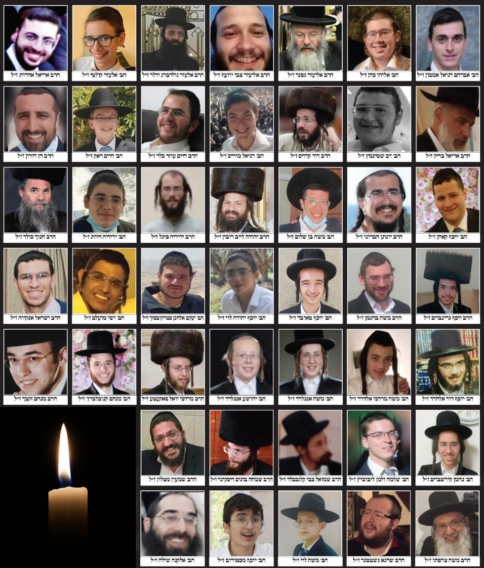 45 people were killed in the Meron tragedy on Thursday night, including at least 24 bochurim and boys, and six US citizens. The full list of victims has been released.