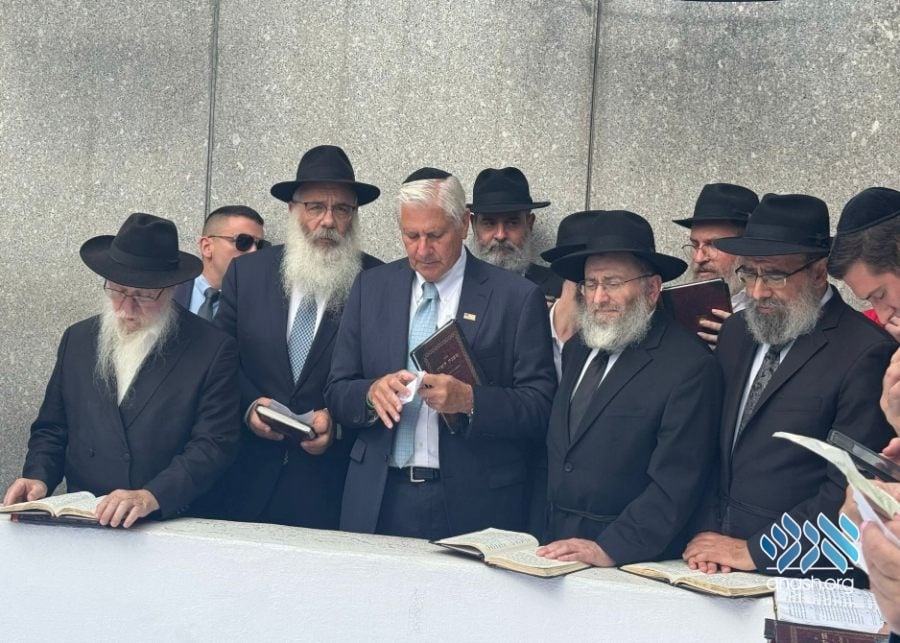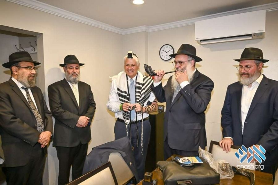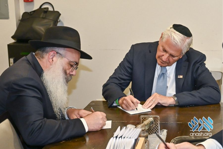 Nassau County Executive in New York and proud Jew, Bruce Blakeman, visited the Rebbe’s Ohel in Queens, accompanied by 12 of the Rebbe’s shluchim from his county, where he proudly donned tefillin and heard the shofar.