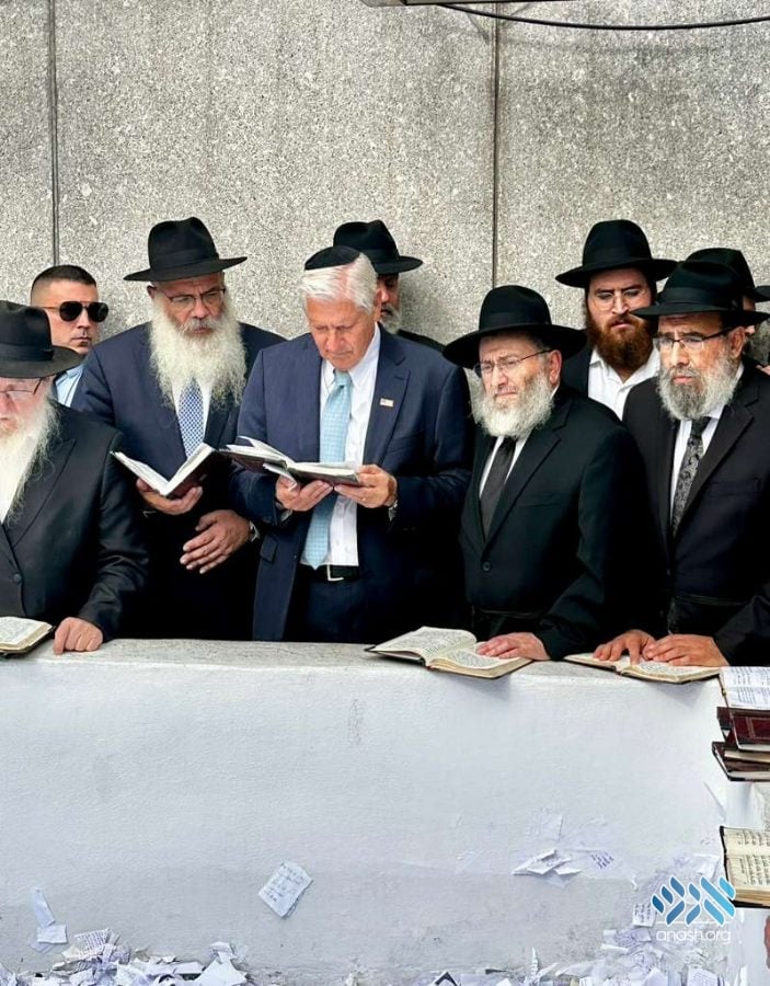 Blakeman wrote a pan and entered the Ohel together with the 12 shluchim, where they davened for the safety of the Jewish people and the swift end of the ongoing war. Joining them was Congresswoman Maizie Phillips, who prayed alongside the group.