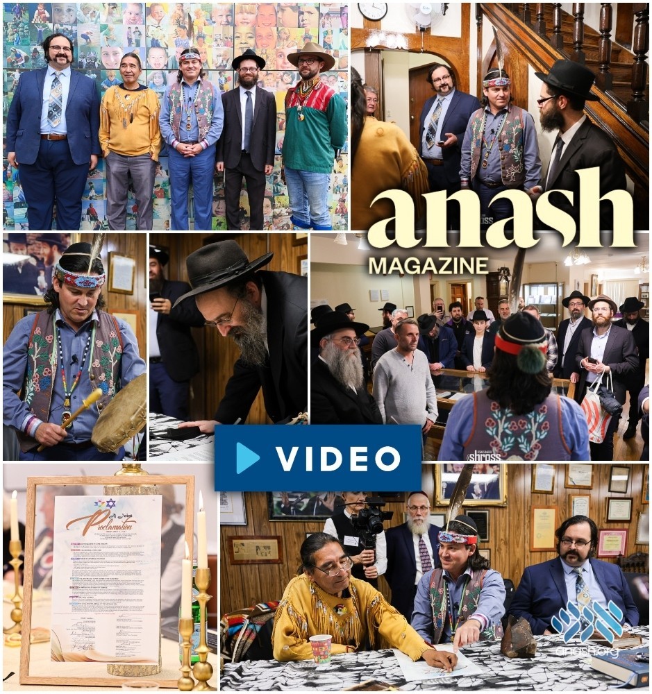And indeed, many heads turned when a delegation of Native American tribal leaders recently visited the Rebbe’s Ohel and 770, dressed in their traditional garb. They came to pray, to declare their belief in one G-d, and to sign a historic declaration of solidarity with the Jewish people and fidelity to the Sheva Mitzvos B’nei Noach.