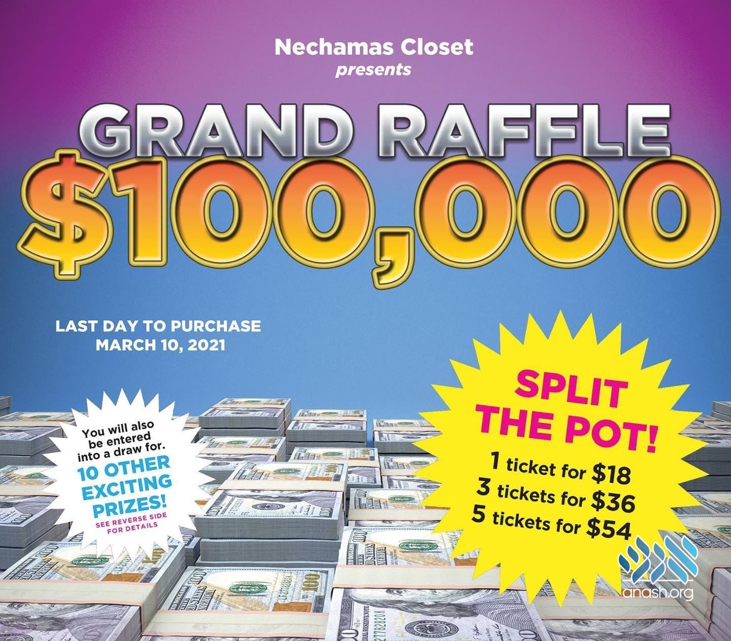 The winner of Nechama’s Closet’s $100,000 raffle has been announced. Split the Pot has been extended to Yud Alef Nissan.