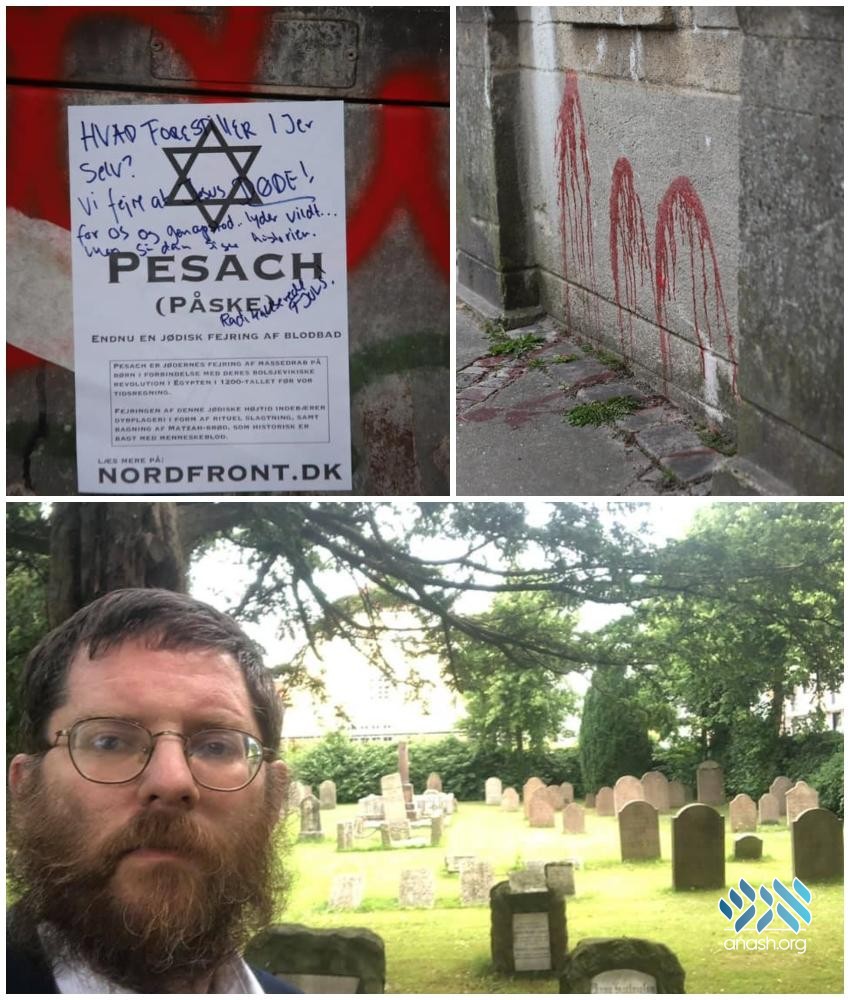 Rabbi Yitzchak Loewenthal, the Shliach to Copenhagen, Denmark called the incident a “Modern-day blood libel” and said he hopes the authorities will find the perpetrators and prosecute them.