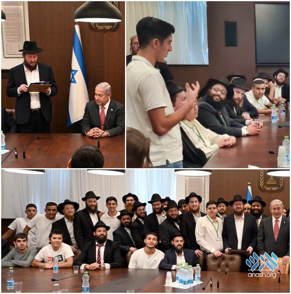 On Wednesday, the day before Gimmel Tammuz, Prime Minister Benjamin Netanyahu welcomed a delegation of tens of CTeen shluchim from across Eretz Yisroel, along with youth who join their programs, at his office in Yerushalayim.