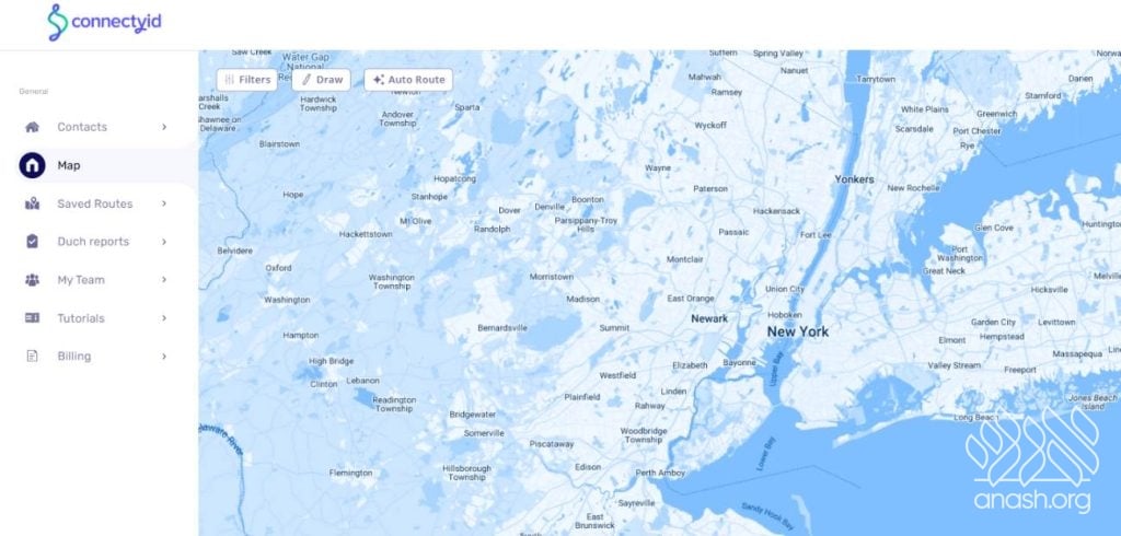 The app allows shluchim to import their existing contact lists directly from an Excel sheet, and from there it takes over. Every contact appears as a pin on a live map. The shliach draws a custom area on the map – whatever neighborhood or zone he wants to focus on for that day or season – and the app instantly builds an optimized route, so volunteers move efficiently from one door to the next without backtracking.