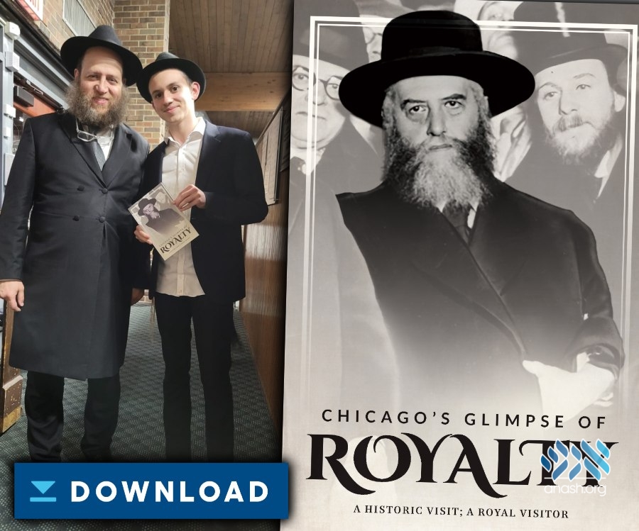 ‘Chicago’s Glimpse of Royalty’ was published by Lubavitch Chabad of Illinois in honor of the 10 Yartzeit of longtime Chicago shliach Rabbi Daniel Moscowitz AH. The book was conceived, researched, and written by his grandson HaTomim Levi Teldon, with layout and design by Rabbi Avremi Hershkop. It was distributed to Anash at the Pesach Kinus Torah in Chicago.