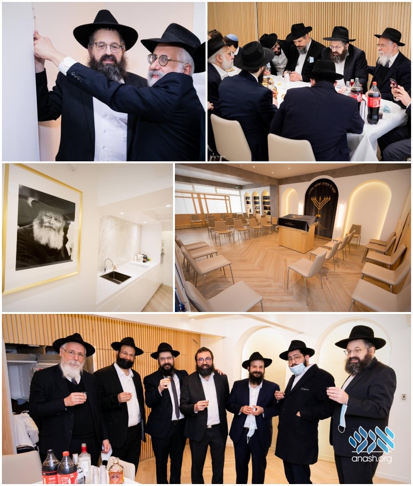 After the official dedication ceremony, shluchim and guests sat down for the first Chassidishe farbrengen in the new Chabad House hall.