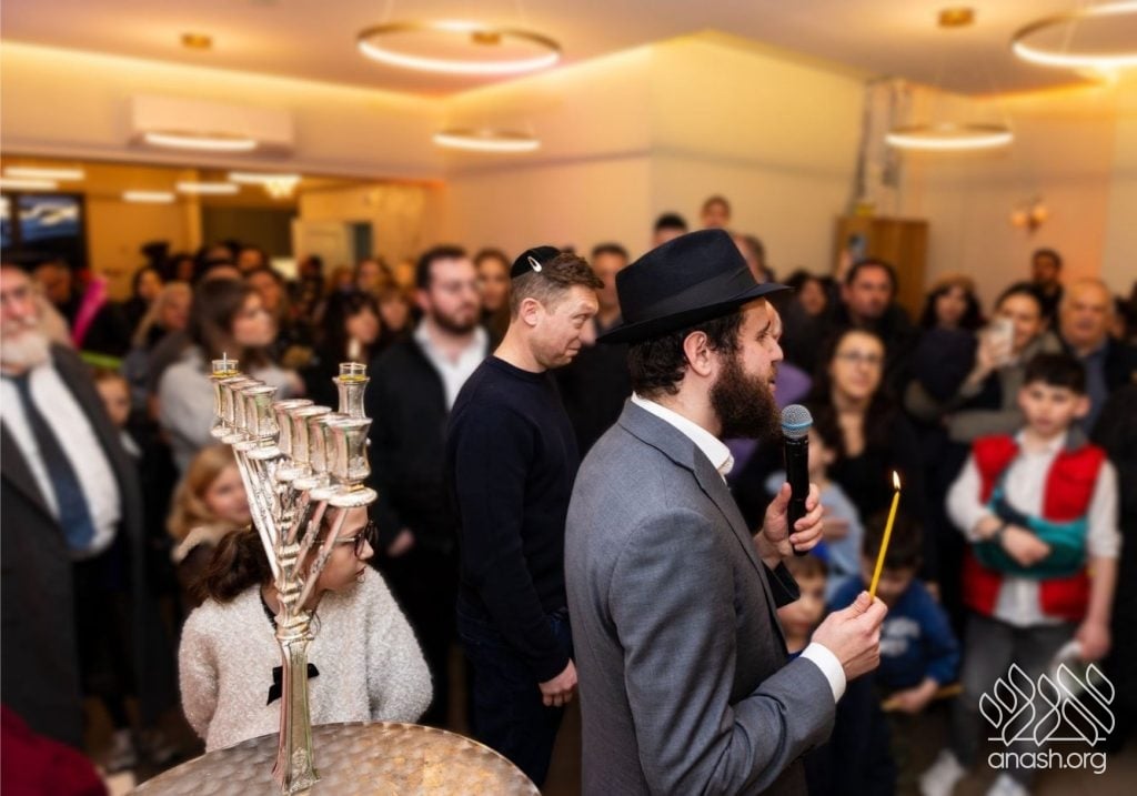 Rabbi Levi Sudak of Chabad of Edgware affixed the mezuzah, formally marking the opening of the Centre. Children were all smiles throughout the event, enjoying circus toys and balloons provided by BBZ, adding to the joyful Chanuka atmosphere.