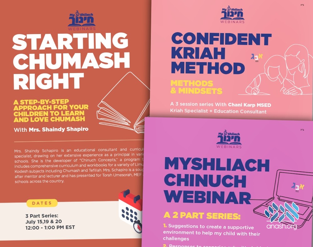 MyShliach, a division of Merkos 302 devoted to providing services to benefit Yaldei HaShluchim, presents a new series of Webinars on Chinuch.