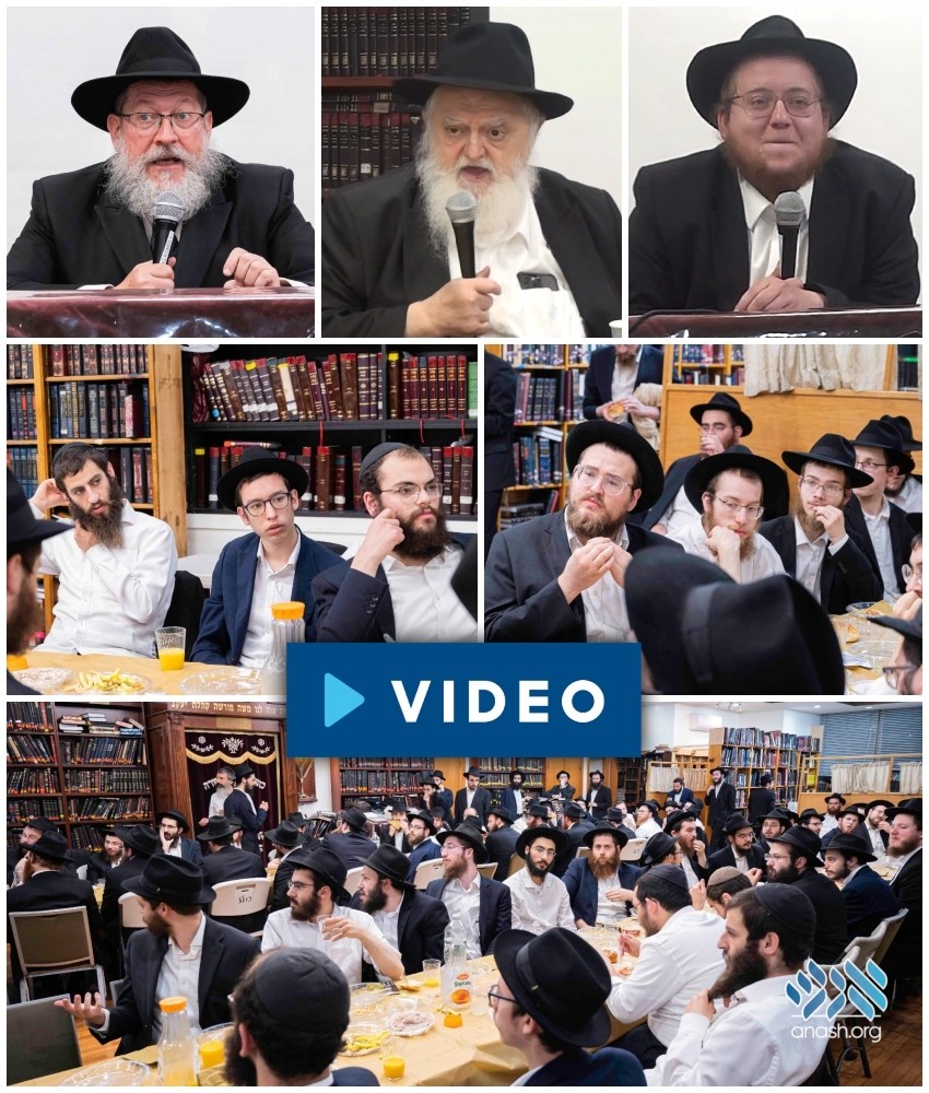 Addressing the farbrengen were members of Rabbi Shlomo Zarchi representing Hanhalas Hayeshiva, and guest speaker Rabbi Levi Garelik.