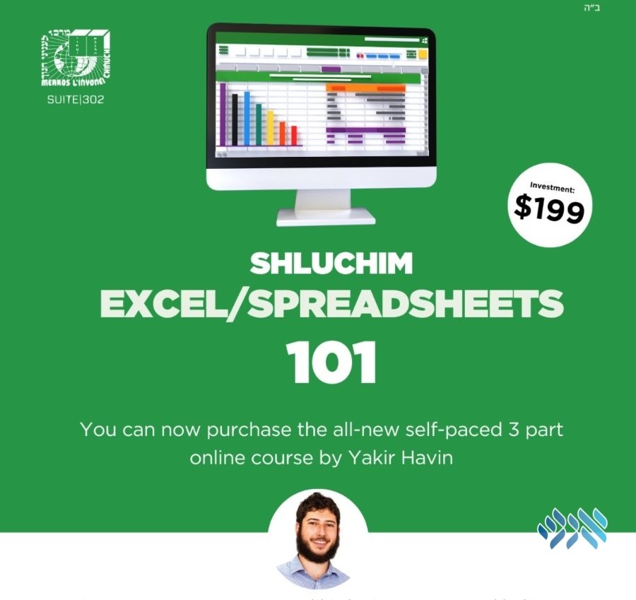 “Shluchim are some of the busiest people around, serving their communities at all times of the day,” says Havin. “Spreadsheets are used for many common tasks, and without them things can feel messy and disorganized. This course aims to enable shluchim to do necessary computer work in an efficient way.”