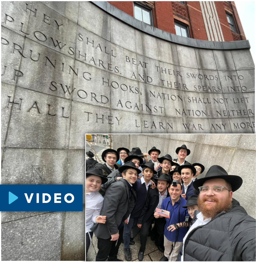 After studying the Rebbe’s sicha where he spoke about the UN’s ‘Isaiah Wall’ bochurim from the New Haven Mesivta took a trip to visit the wall for themselves.
