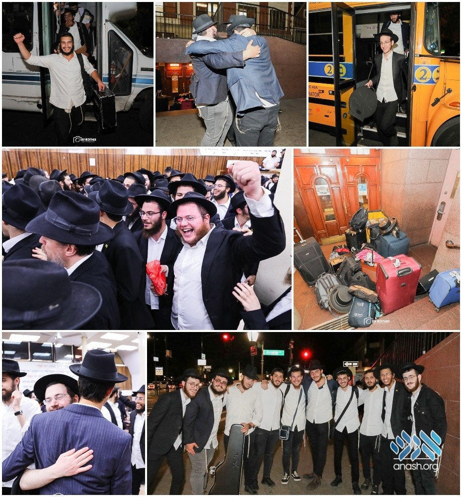 A large group of bochurim from Eretz Yisroel arrived in New York on Thursday night to spend the coming year in the ‘kevutzah’ program at 770. They were greeted enthusiastically by their peers, and immediately broke into a spirited dance.