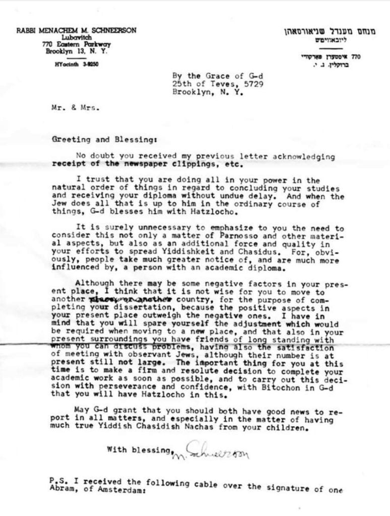 New previously unpublished letters of the Rebbe on college education have been published by Rebbe Responsa. The letters reveal the Rebbe’s position, offering guidance for attending college at first and for baalei teshuva who have already begun pursuing a degree.