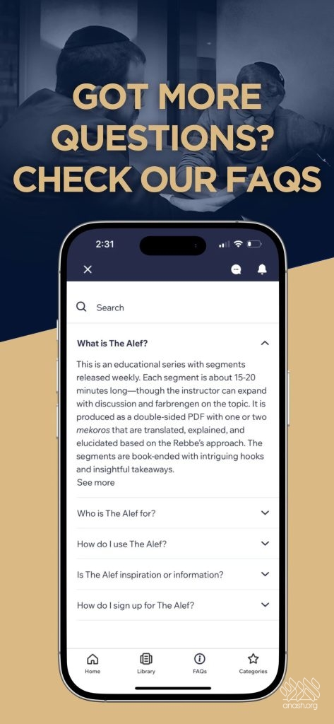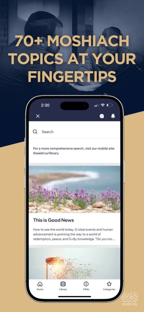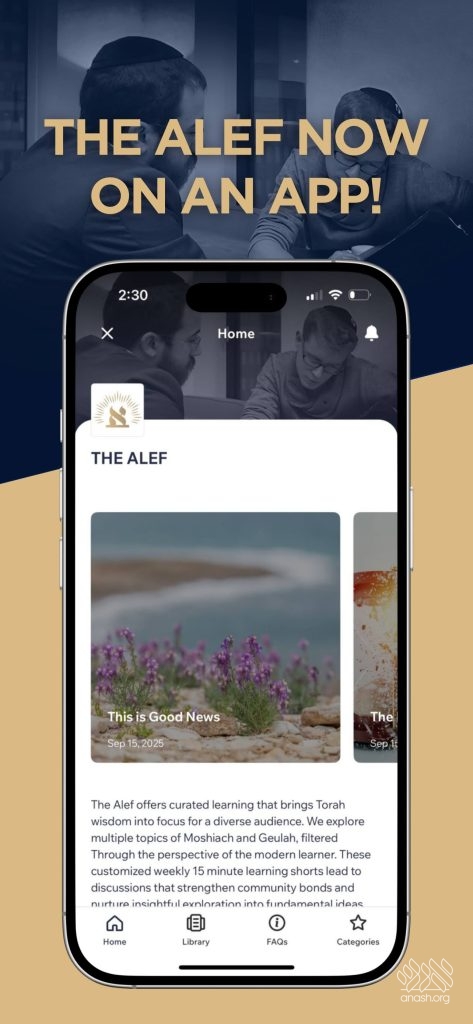 The Alef started as a simple weekly email and has grown into a worldwide phenomenon. Now, that experience is expanding far beyond the inbox: With The Alef App: 70+ Moshiach Topics at Your Fingertips