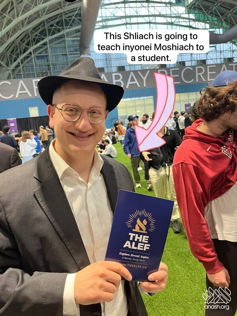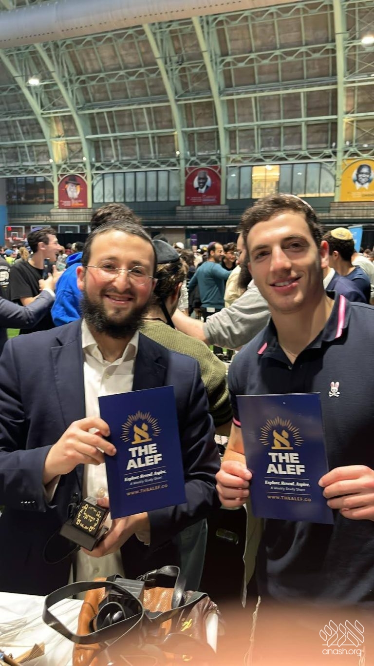 Throughout the Kinus weekend, a booth at the Mosdos Fair on the Women’s Plaza at 770 invited participants to pick up a printed copy of The Alef to learn Inyonei Geulah u’Moshiach with someone in their community.
