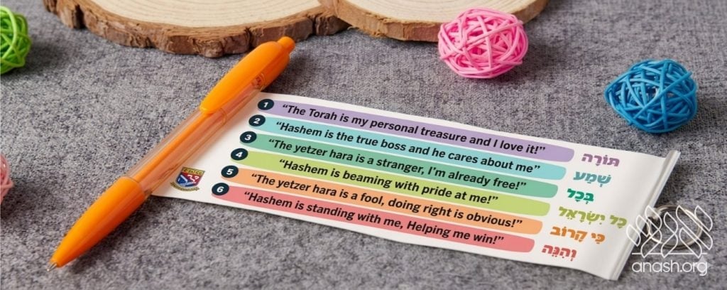 Each item was created with a specific use in mind: The pull-out pen gives children something interactive they can use and be reminded of the pesukim during the day. The card can be kept in a pocket or wallet and pulled out easily, making it easy to review the Pesukim on the go. The poster gives classrooms, mosdos, and homes a way to keep the Pesukim visible and present in the environment.