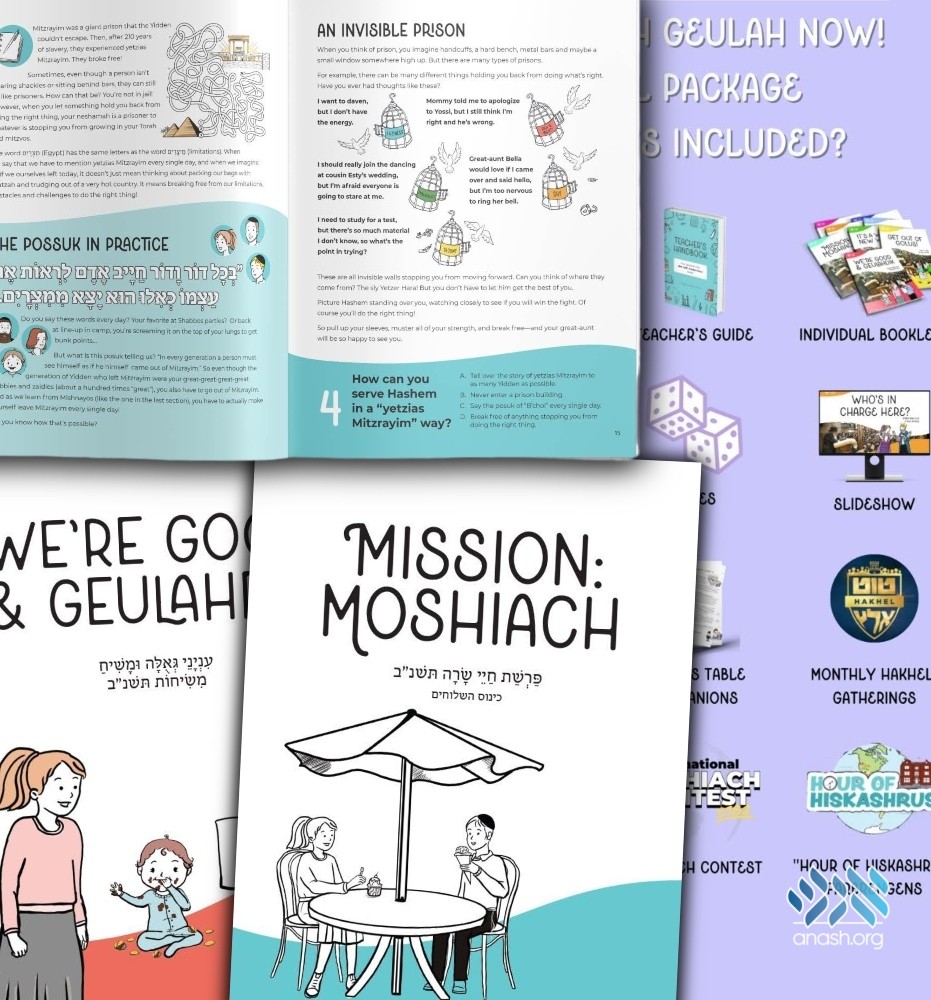 Built and designed for children, the lessons explore fundamental ideas surrounding Moshiach based on the Rebbe’s Sichos. Live With Geulah Now is a project of Tut Altz, a division of the Moshiach Office at Merkos 302. Nine segments, each spanning three to four weeks, explore various topics regarding the time directly preceding the coming of Moshiach, as well as our ability and obligation to bring about his arrival.