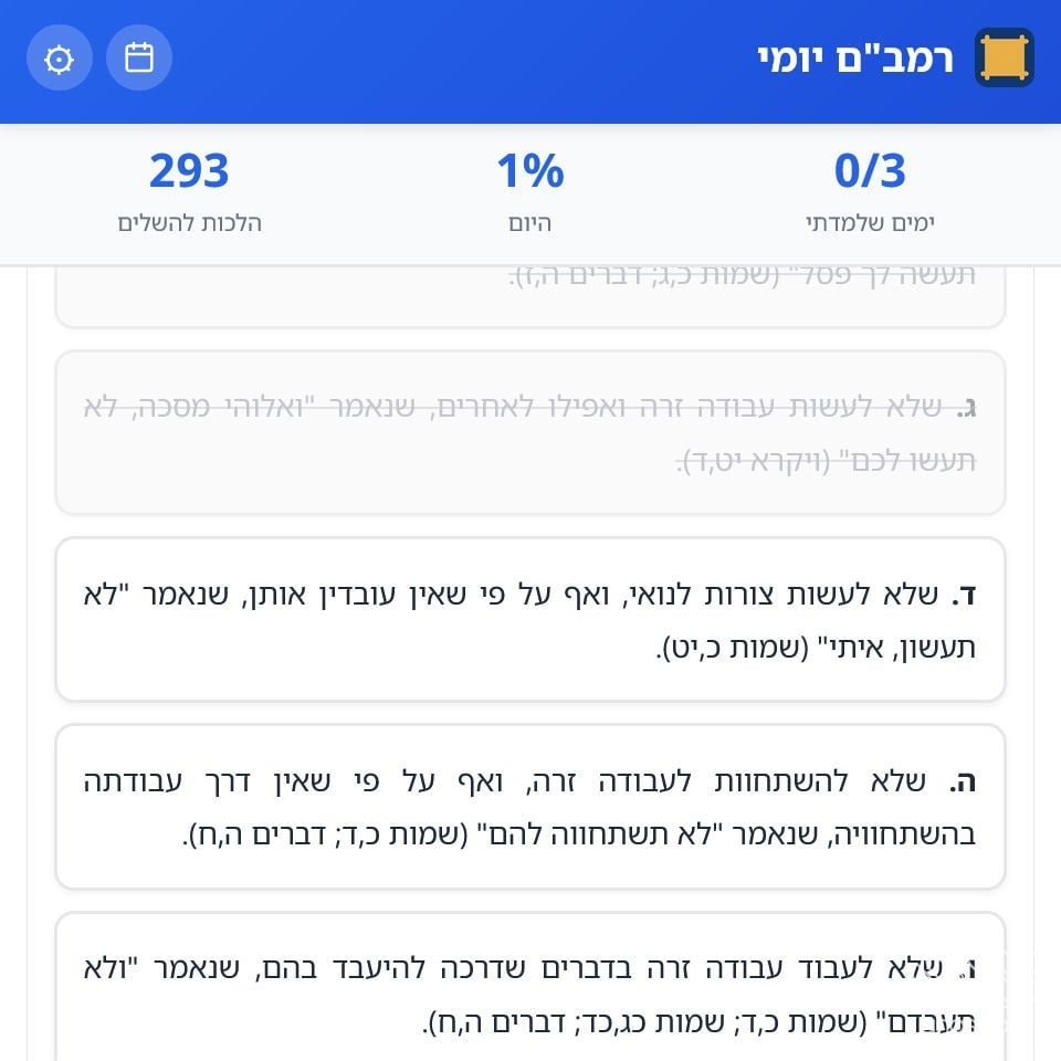 A clever online app has been launched to help learners follow the Rambam daily, showing each day’s halacha and tracking progress in real time. Users can swipe to mark learned halachos, see what remains, and monitor their advancement in percentages. All data is stored locally on the device, with no server involved, and progress is saved for whenever they return. The app can also be saved to a phone for easy daily access.