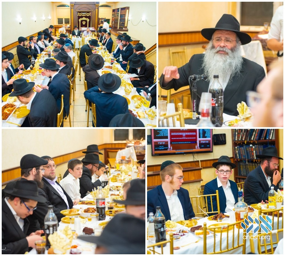 Newly appointed Rov of the Beis Eliezer Yitzchak Shul Rabbi Kalman Weinfeld, led the Shul’s Gimmel Tammuz farbrengen, his first farbrengen in his new position.