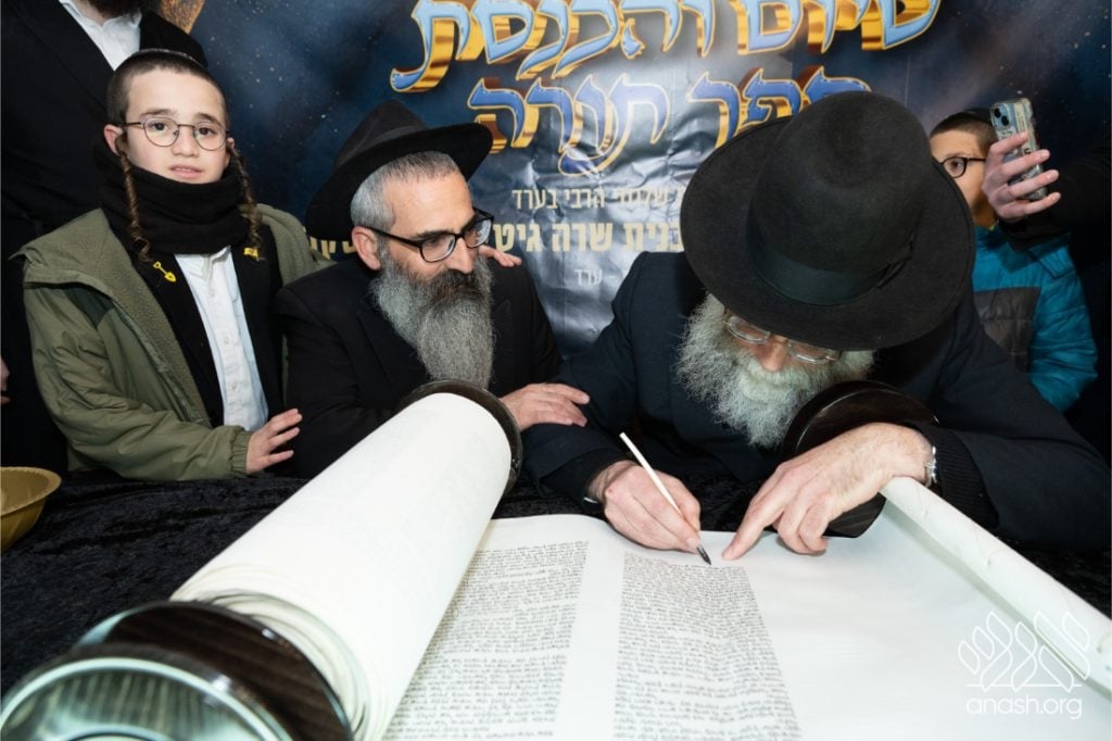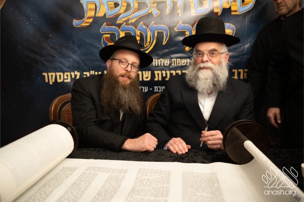 A celebration was held in Arad, Eretz Yisroel, for the dedication of a Sefer Torah in memory of the city’s first shluchim and the city’s rov, Rabbi Bentzion and Rebbetzin Sarah Lipskier AH.