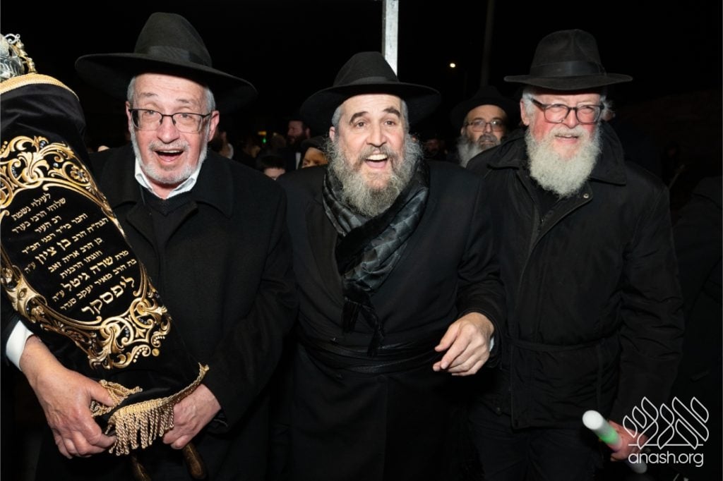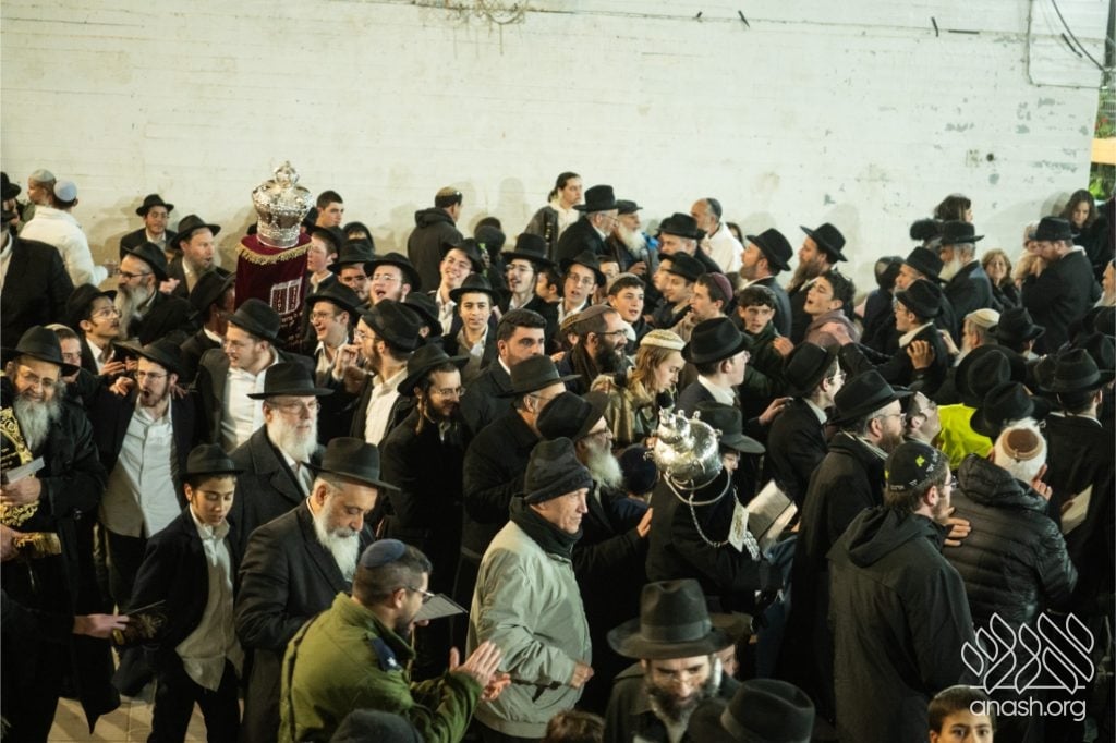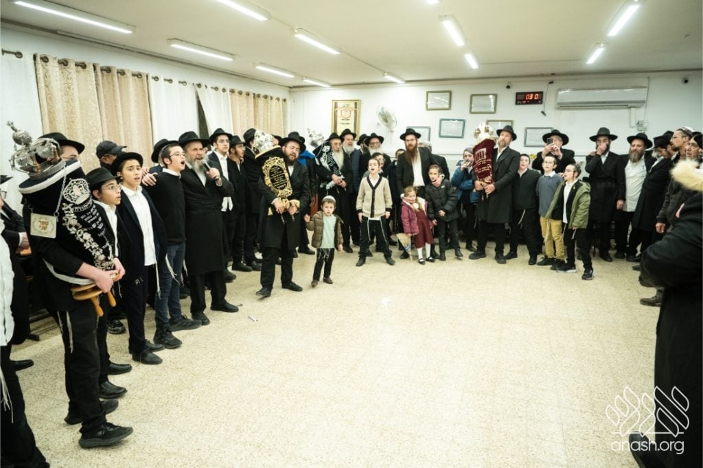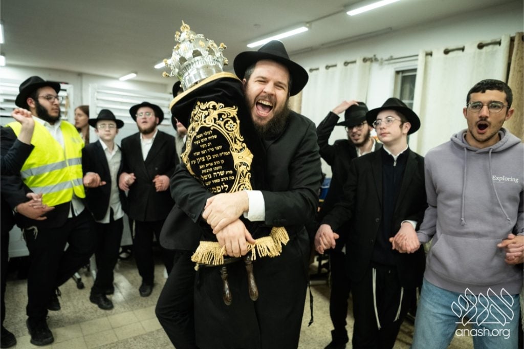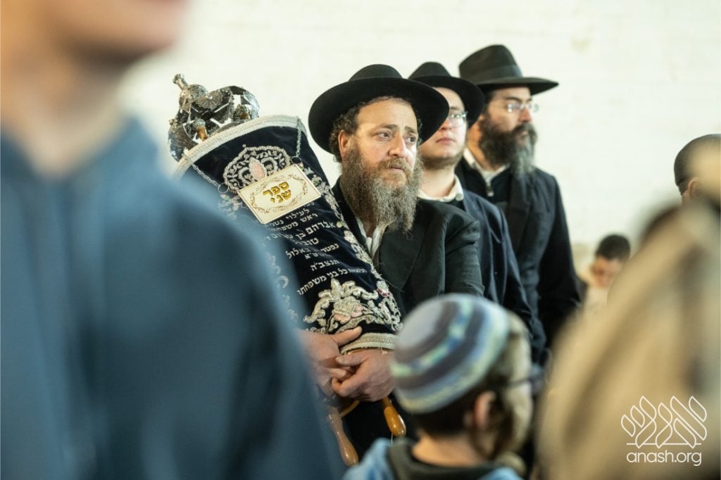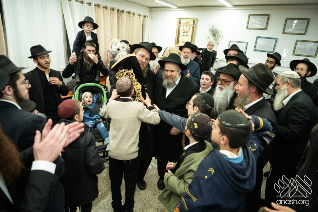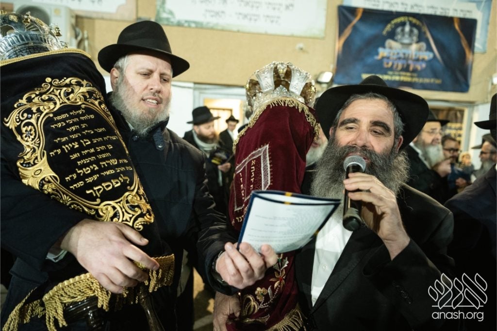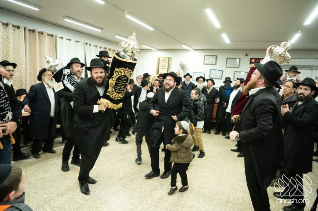 Hundreds of city residents and bochurim from Kiryat Gat and other yeshivos accompanied the sefer Torah in an impressive procession with joyous singing and dancing to the Anash shul. The procession was skillfully led by shliach Rabbi Nochum Goldschmid.