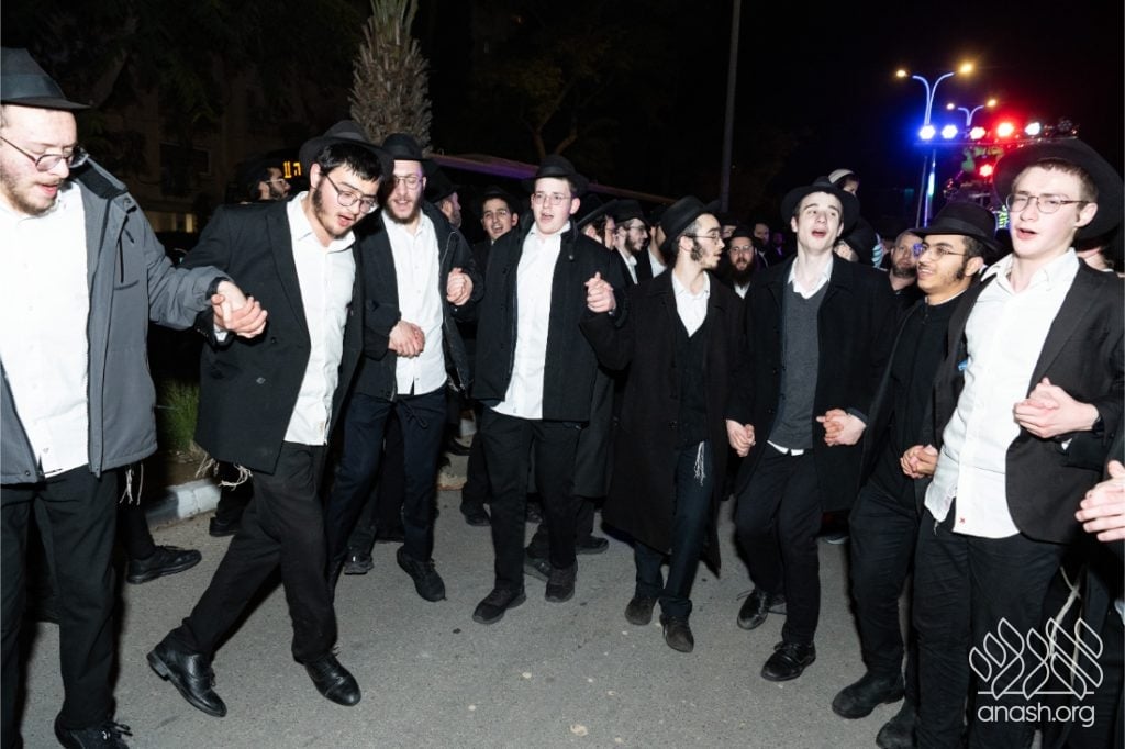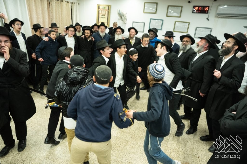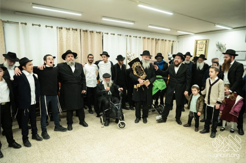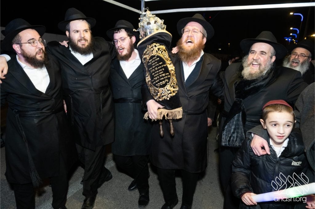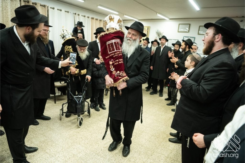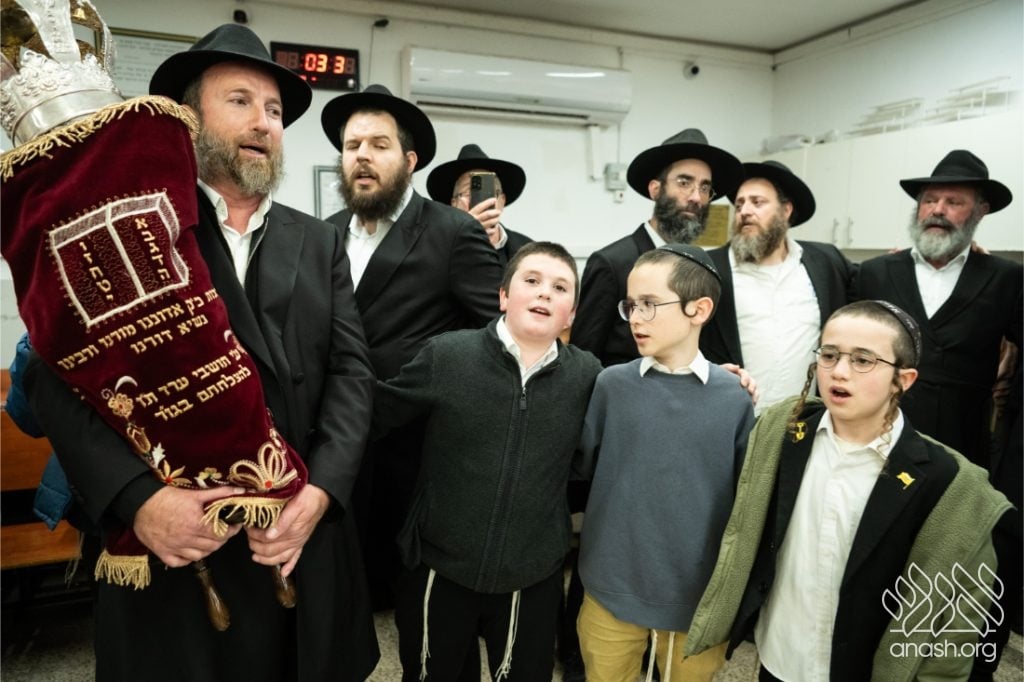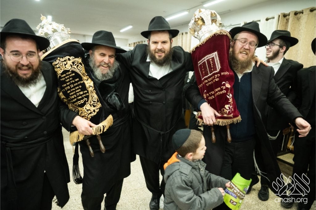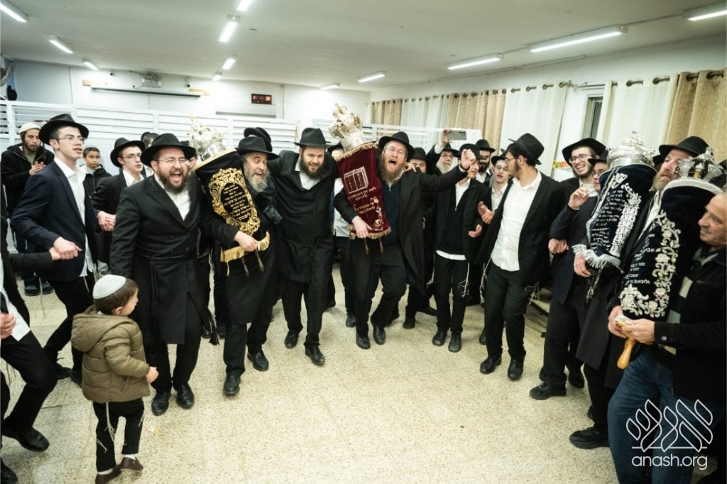 Hundreds of city residents and bochurim from Kiryat Gat and other yeshivos accompanied the sefer Torah in an impressive procession with joyous singing and dancing to the Anash shul. The procession was skillfully led by shliach Rabbi Nochum Goldschmid.