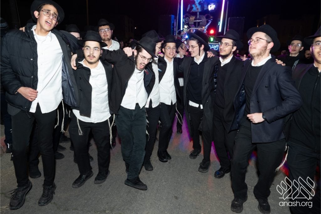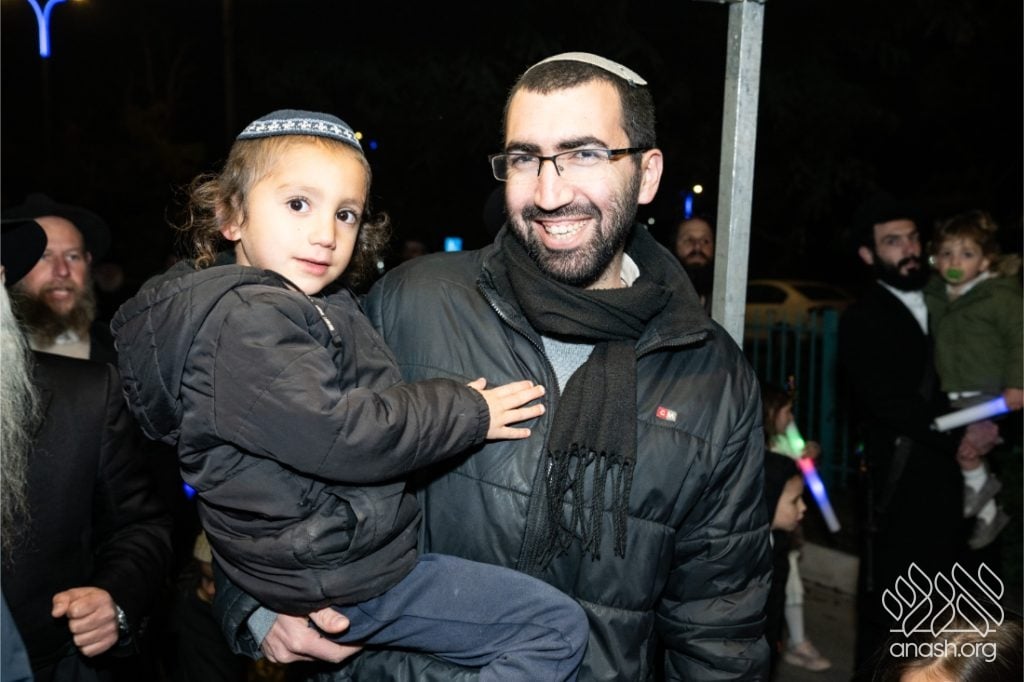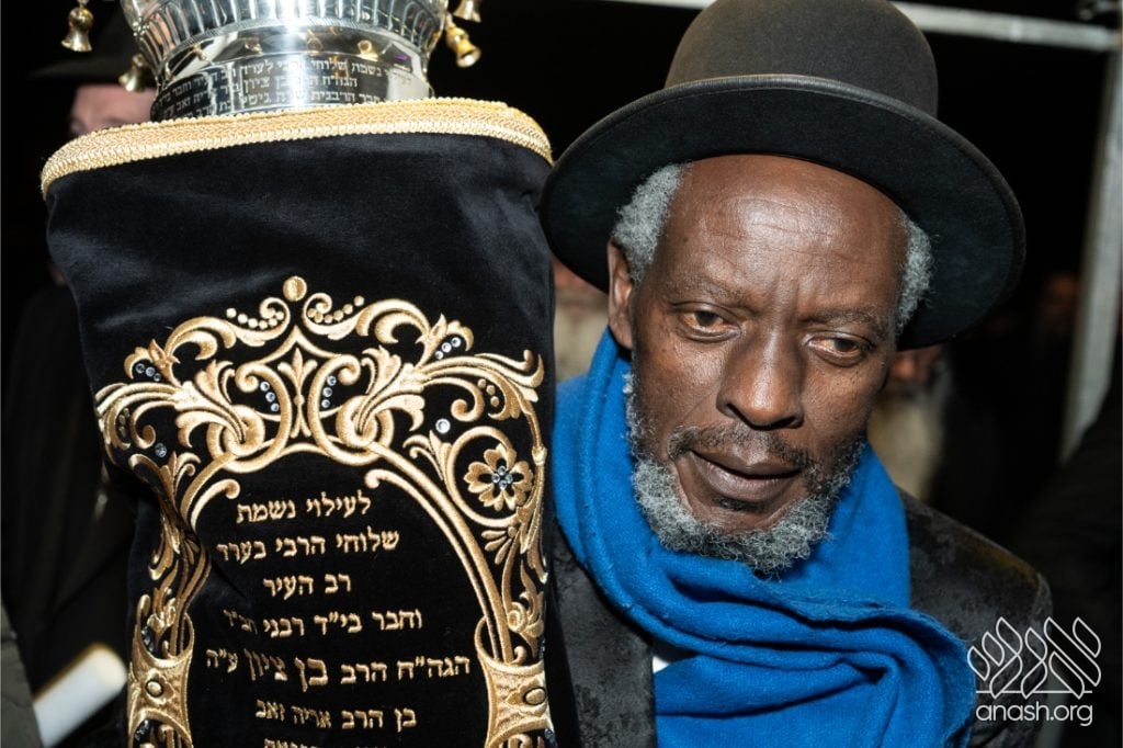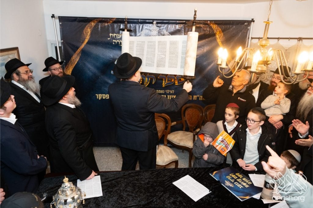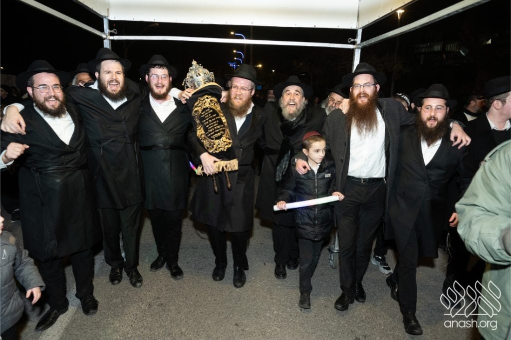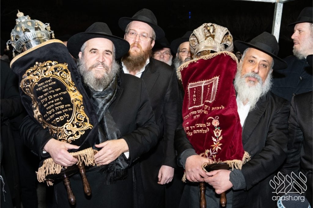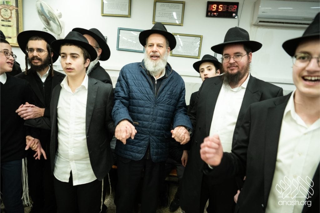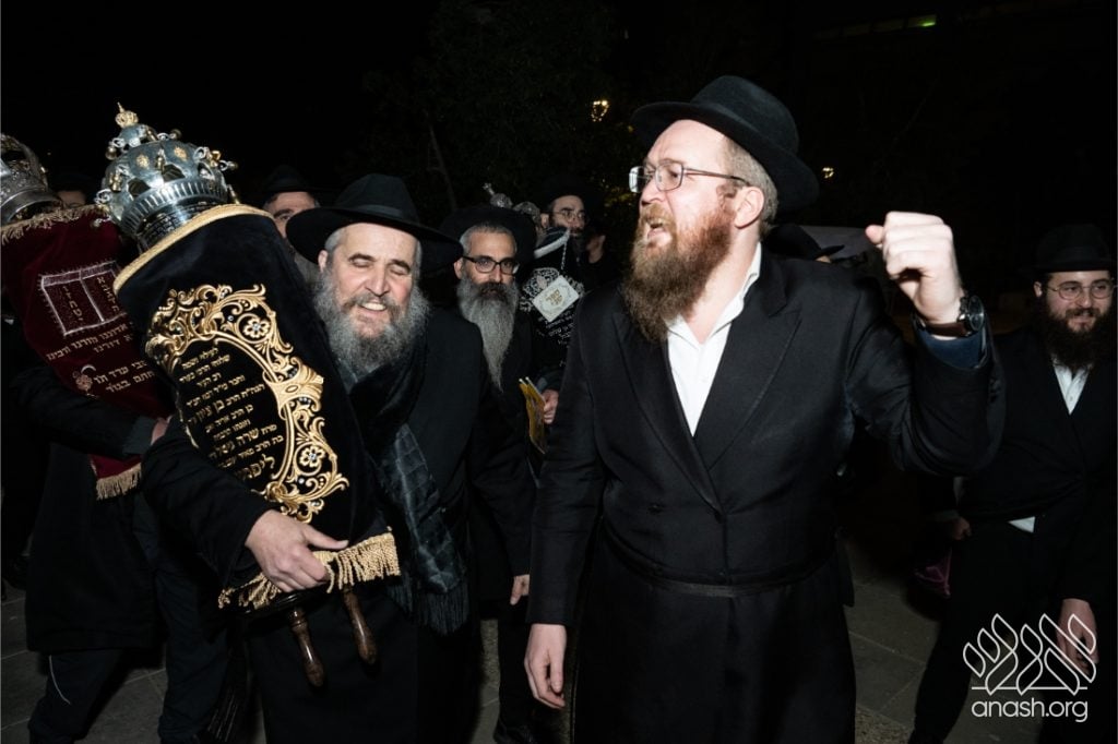 Hundreds of city residents and bochurim from Kiryat Gat and other yeshivos accompanied the sefer Torah in an impressive procession with joyous singing and dancing to the Anash shul. The procession was skillfully led by shliach Rabbi Nochum Goldschmid.
