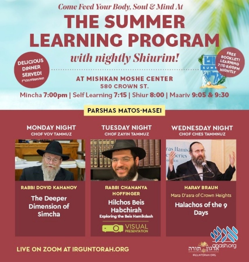 New shiurim by leading magidei shiurim and the ‘Tut Altz’ curriculum free of charge will be available for the public at this week’s Summer Learning Program in Crown Heights.