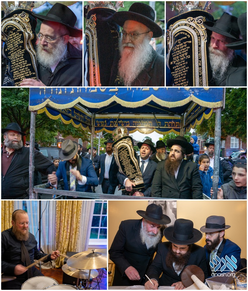 A new Torah was concluded on Sunday in Crown Heights and welcomed into Shain’s Shul on Kingston Avenue with music, dancing, and the traditional hakafos.