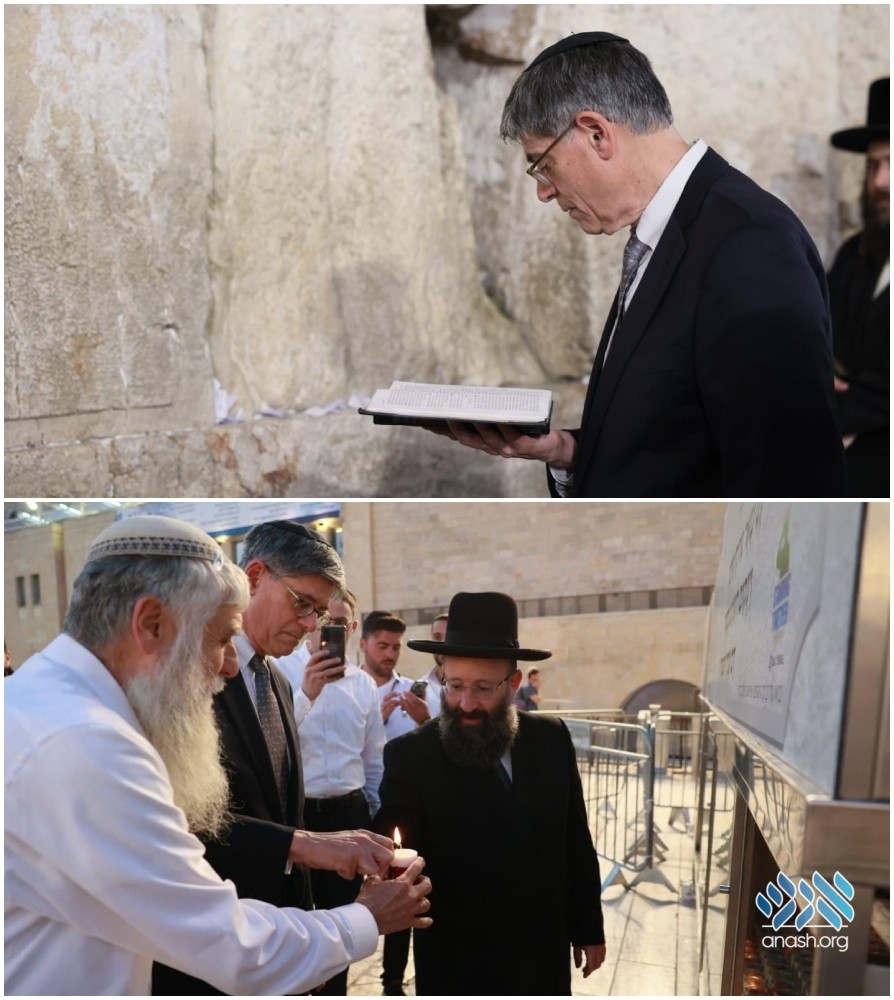 Jacob Lew, the new U.S. Ambassador to Israel, visited the Kosel in Yerushalayim shortly after arriving to fill his new role and lit a candle in memory of the victims of the vicious Hamas attack on Simchas Torah.