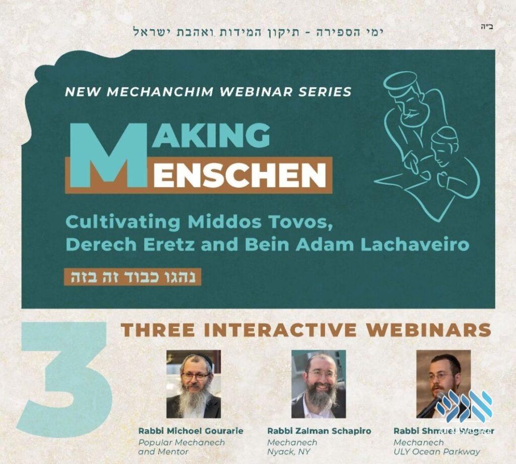 To this end, Igud Hamelamdim is proud to present “Making Menschen,” a three-part webinar series on the topic of mentschlichkeit and middos tovos.