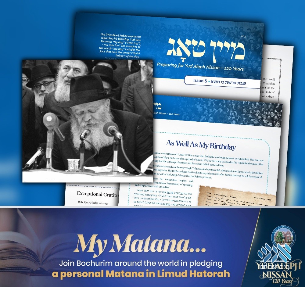 As Chassidim around the world prepare for the upcoming Yud-Aleph Nissan, the Rebbe’s 120th birthday, the Vaad Hatmimim is pleased to present a new weekly publication: “Mein Tog” – “My Day”.