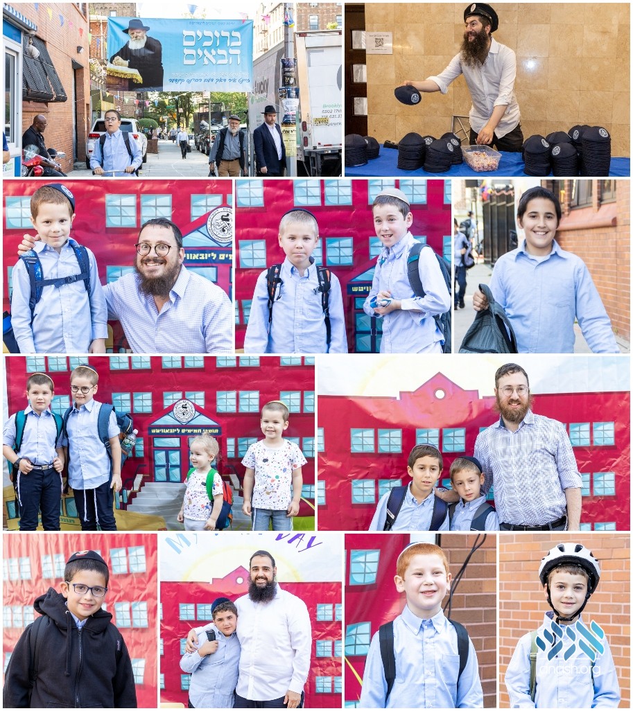 Students were greeted by a celebratory banner and joyous music. Each child received a treat and a Lubavitcher Yeshiva yarmulka before heading to their classrooms to start learning the sweet Torah.
