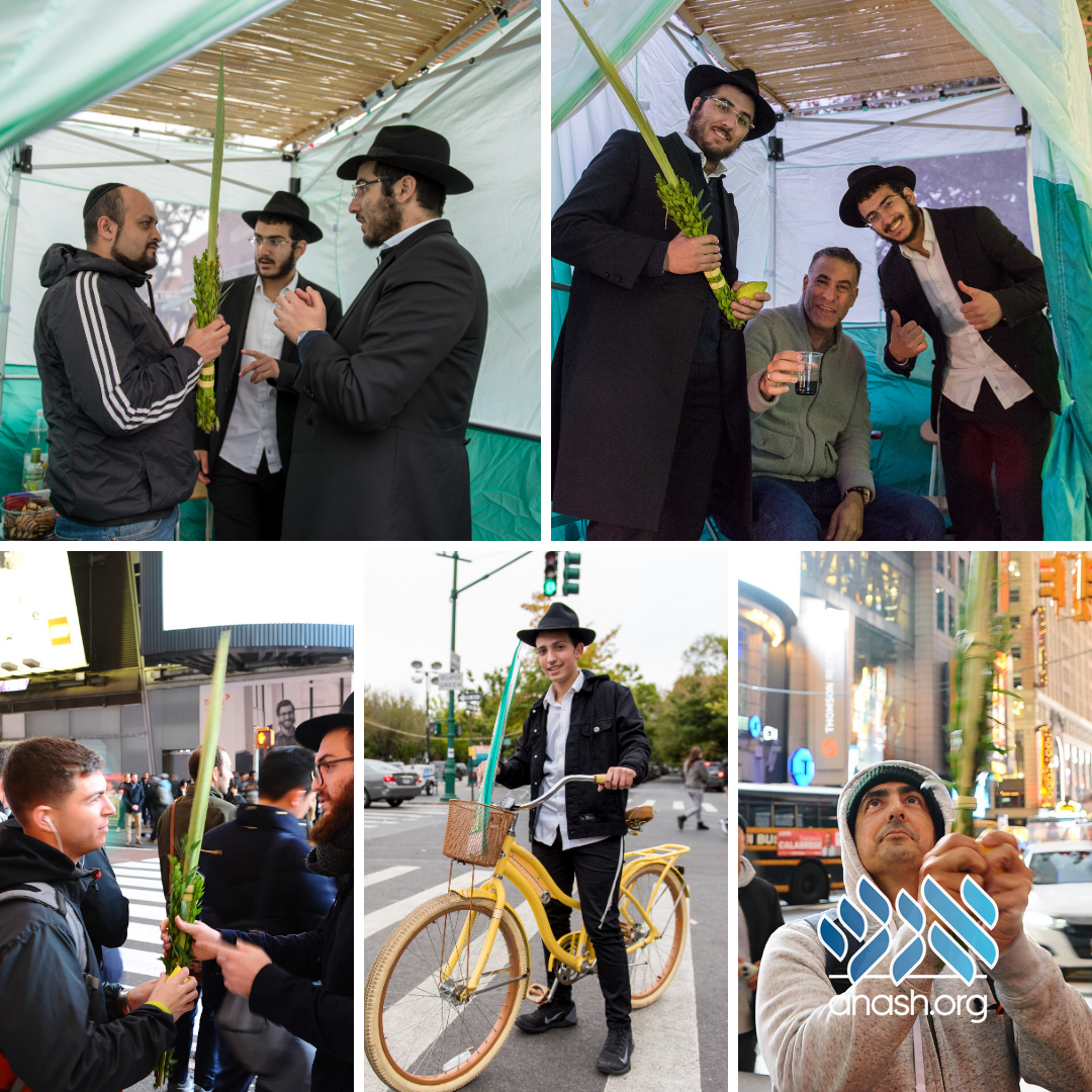 Hundreds spread out over New York City to assist their fellow Jews in performing the mitzva of lulav and esrog, as part of mivtzoim organized by Vaad Talmidei Hatemimim.