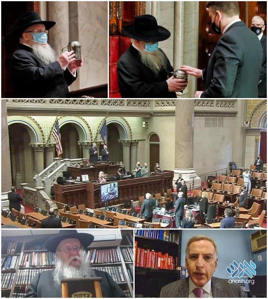The New York State Assembly and Senate were opened with a special prayer in honor of the Rebbe. The New York State Assembly was opened by “Zoom.” The New York State Senate was opened in person.