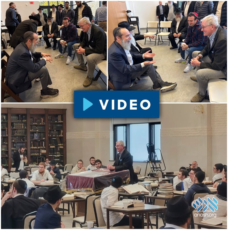 New Jersey Governor Phil Murphy visited Morristown for the shiva of NJ Head Shliach Rabbi Moshe Herson AH, where he paid condolences to his sons and spoke in the Yeshiva Zal about his relationship and admiration for Rabbi Herson.