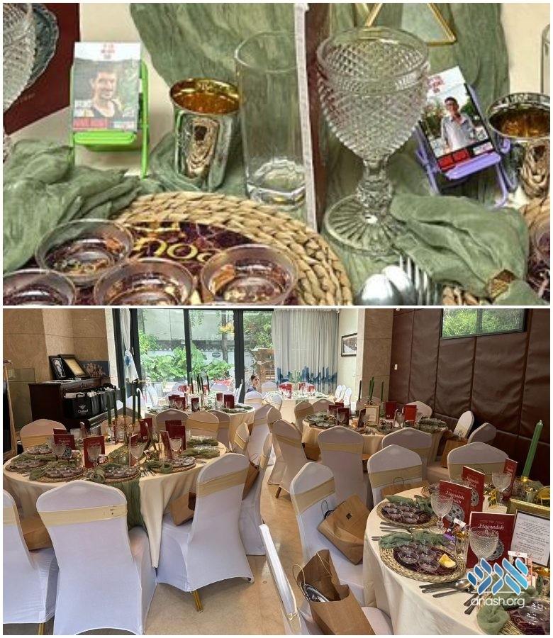 At Chabad Chengdu, this teaching takes a poignant form. There are no empty seats around the tables. Every single one is filled with a Jew to celebrate Pesach. Instead, on the table by each seat is an empty miniature chair, adorned with a photo of a hostage, reminding us that there are still those who are held captive.