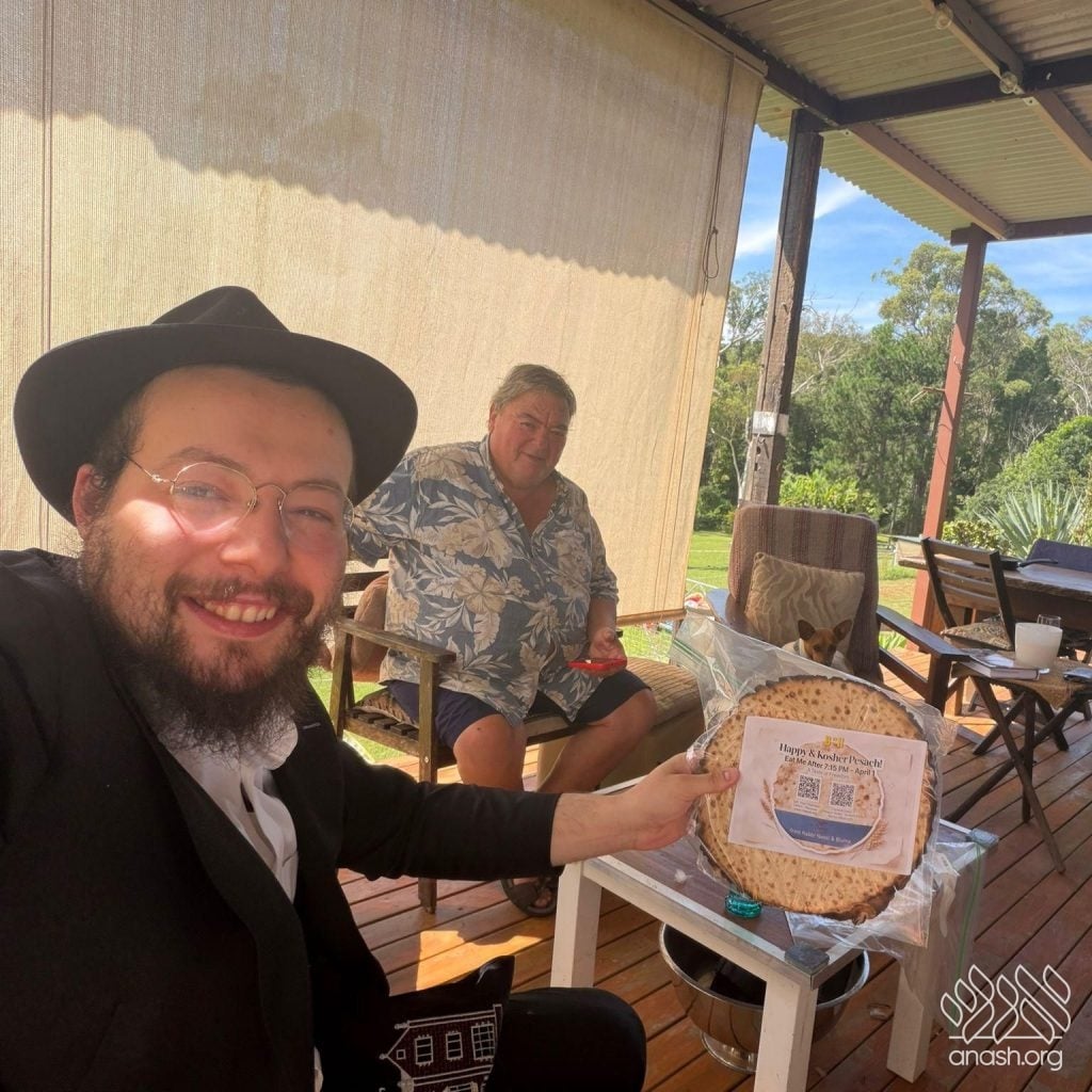 After driving more than 300 kilometers, delivering matza across Australia’s Central Coast, Rabbi Nosson Kornhauser finally arrived home when his phone rang: There was one woman who had somehow been overlooked and matzah hadn’t been delivered to her home.