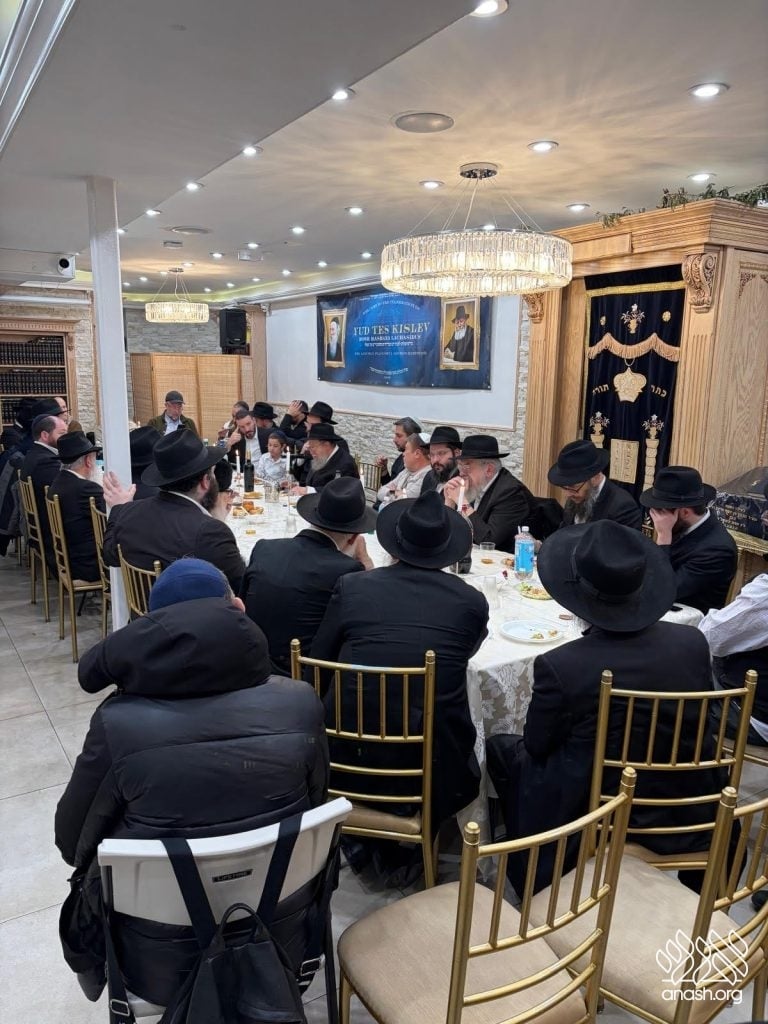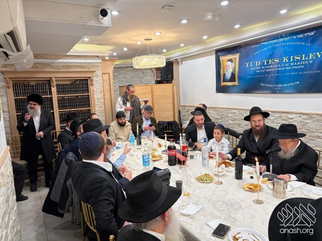 On Yud Tes Kislev, a farbrengen was held at Lincoln Place Shul and Beis Hamedrash in North Crown Heights. The farbrengen followed the tradition that has developed over the years in North Crown Heights, where Yud Tes Kislev is celebrated with a warm and abundant Farbrengen.