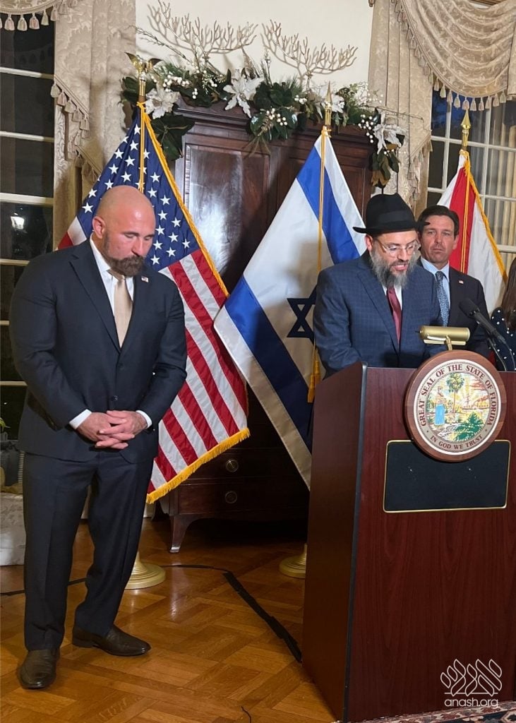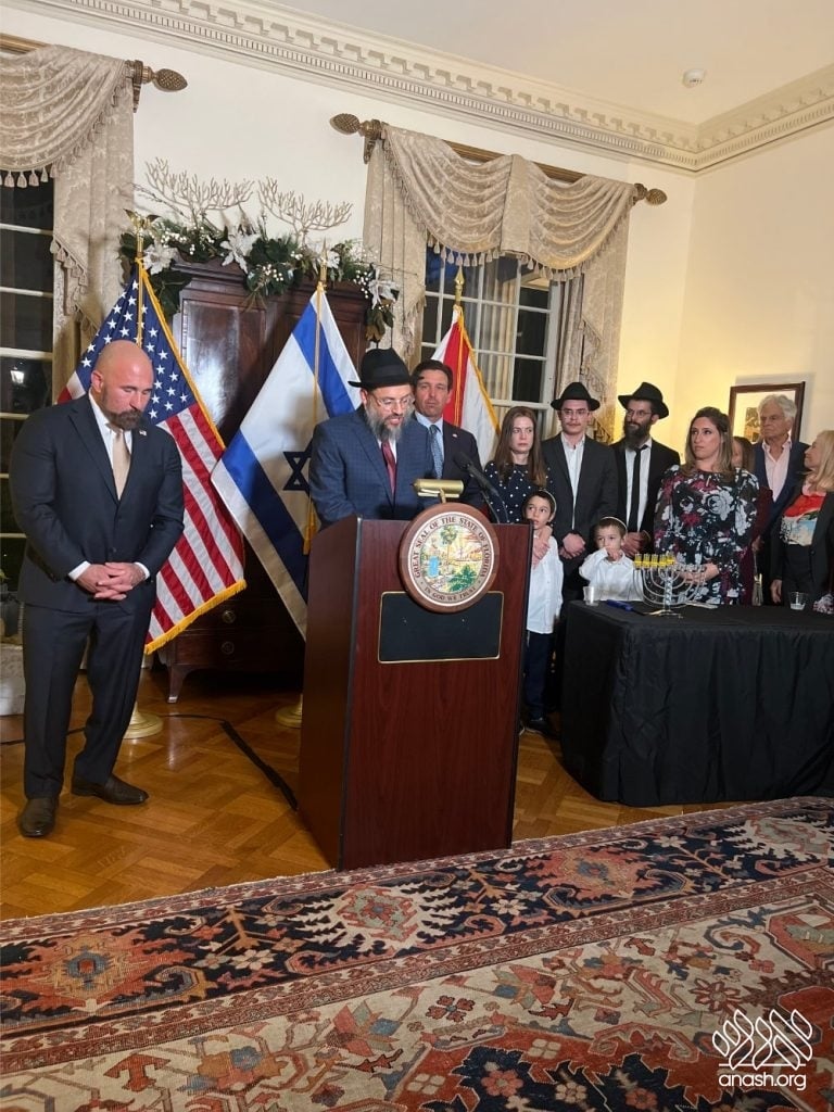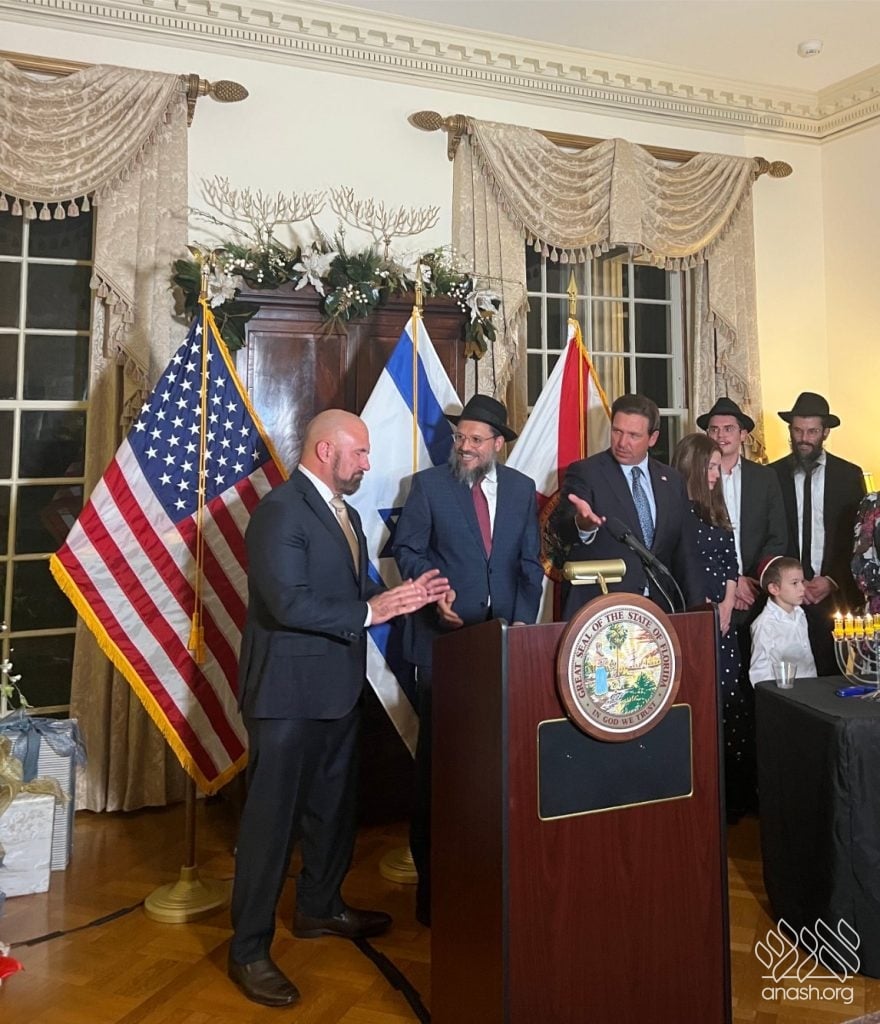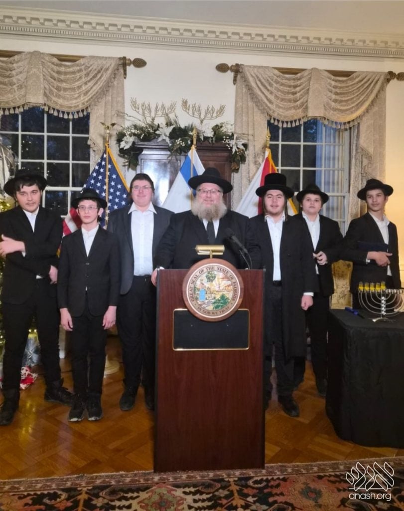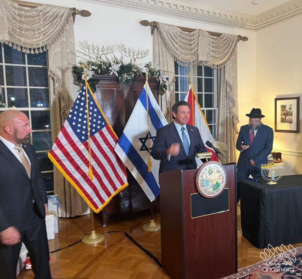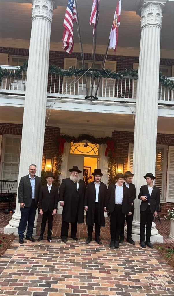 As part of the Chanukah celebrations, talmidim of Yeshivas Lubavitch Northwest Florida were invited to participate in a Chanukah party hosted by Governor Ron DeSantis and the First Lady at the Florida Governor’s Mansion. Governor DeSantis spoke about his commitment to supporting the Jewish community throughout Florida, and the bochurim represented Yiddishkeit and Chassidishkeit with dignity and warmth.