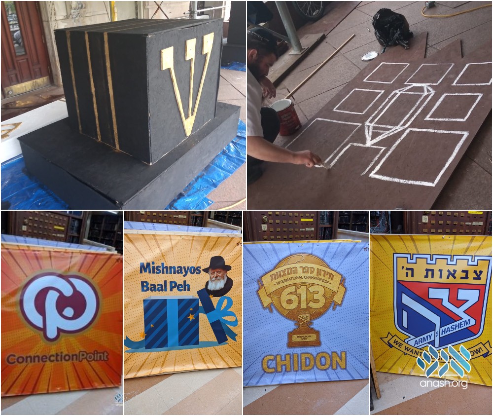 Special thanks goes to Rabbi Chanina Sperlin and Yossi Teleshevsky for their dedicated efforts to make this a reality. Under the direction of Rabbi Shimon Hecht and Shimon Sabol of NCFJE, Yossi recruited crafty and talented bochurim and armed them with materials and 48 hours. The results are masterfully artistic displays of genuine Lubavitch Jewish themes to parade through the streets of our neighborhood with music and song.