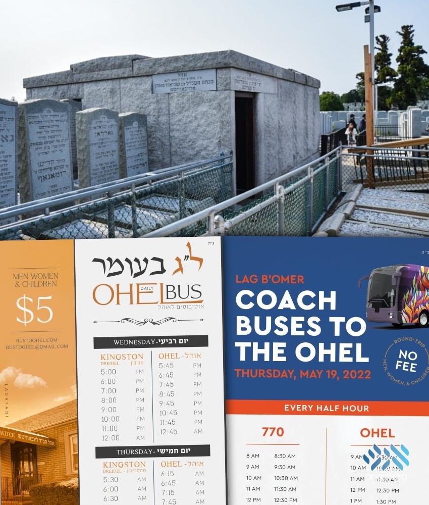 On Thursday, Lag B’omer buses will be traveling to the Ohel every half hour beginning 8:00 AM until 9:00 PM.