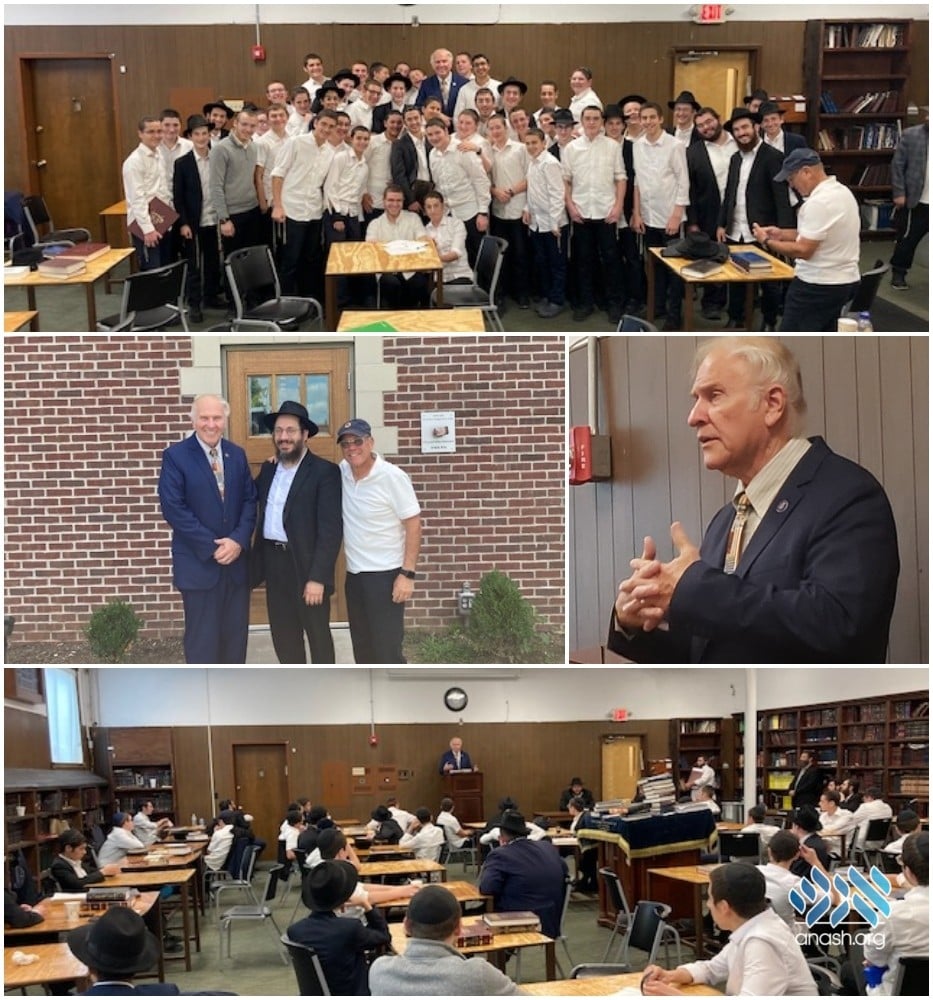 He was warmly greeted by Rabbi Gershon Avtzon and interacted with the Talmidim. He shared some personal stories of his humble beginnings, growing up in a trailer park, and his struggles and failures over the years in getting elected. He encouraged all the Talmidim not to give up and proudly said that “Chabot is as close to Chabad as you are going to get in congress!”.