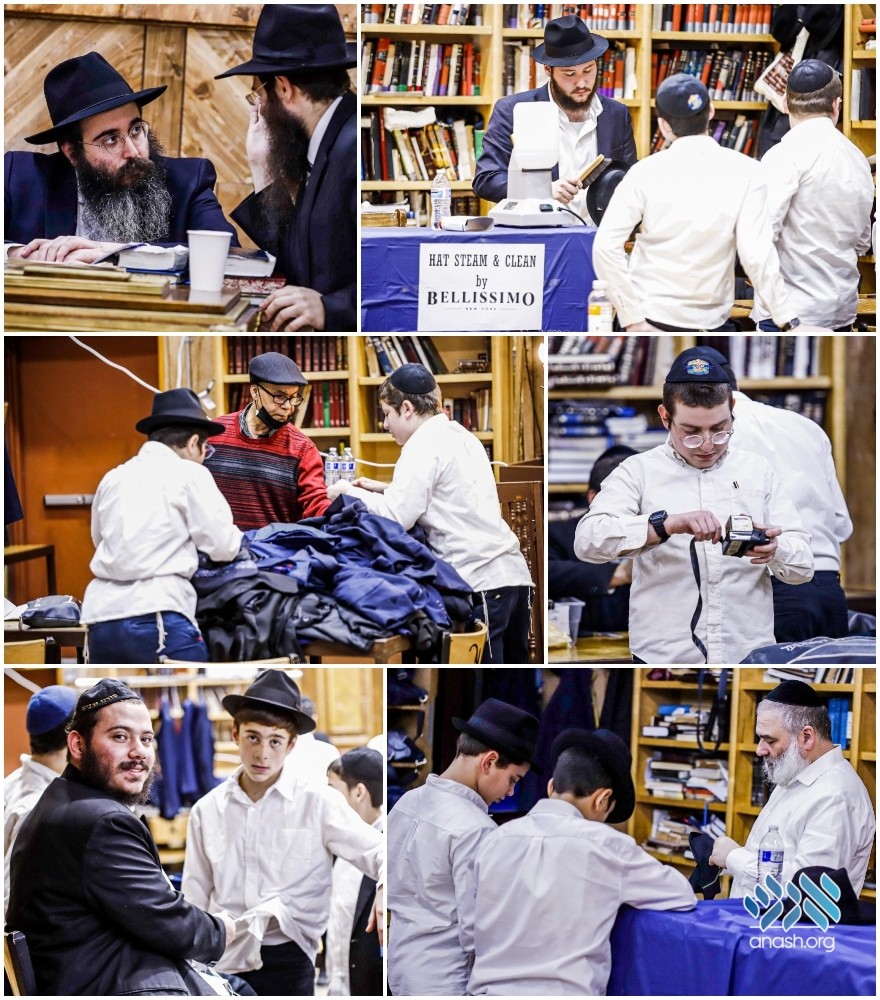 Vendors included Troy Organic Cleaners, who had a tailor on-site to add a button to jackets, allowing the bochurim to close them right over left; Belissimo, who were offering hat steaming and cleaning; and glasses fixing and straightening by See View Optical.