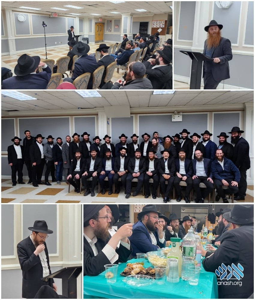 The gathering held in the spirit of the Hakhel year was addressed by Rabbi Shmuly Avtzon, director of Sichos in English, Rabbi Yitzchok Lerman, shliach in Rutherford, NJ, and Rabbi Saadia Pewzner, shliach in the Bronx.