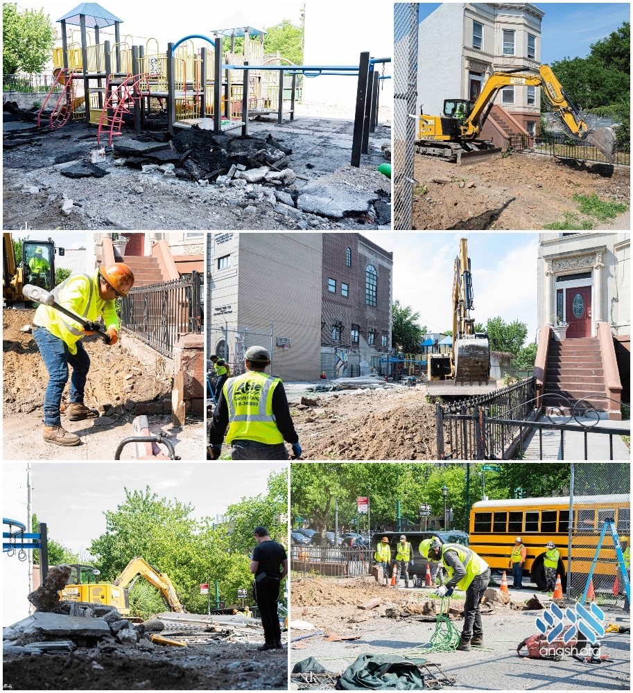 Workers arrived at Oholei Torah’s campus on Eastern Parkway to clear the lot near the campus and prepare it to be a playground and play area for the children.