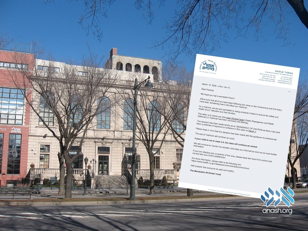 Oholei Torah sent out a letter to parents canceling school for class Gimmel-Daled due to a student’s potential exposure to coronavirus.