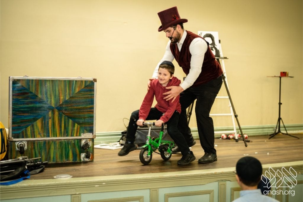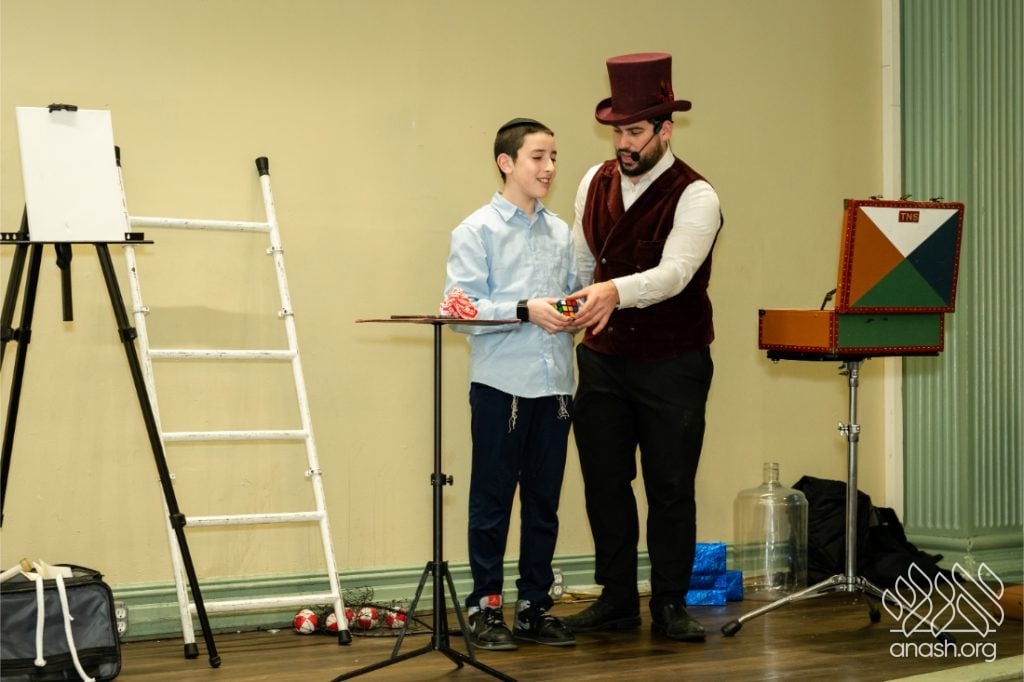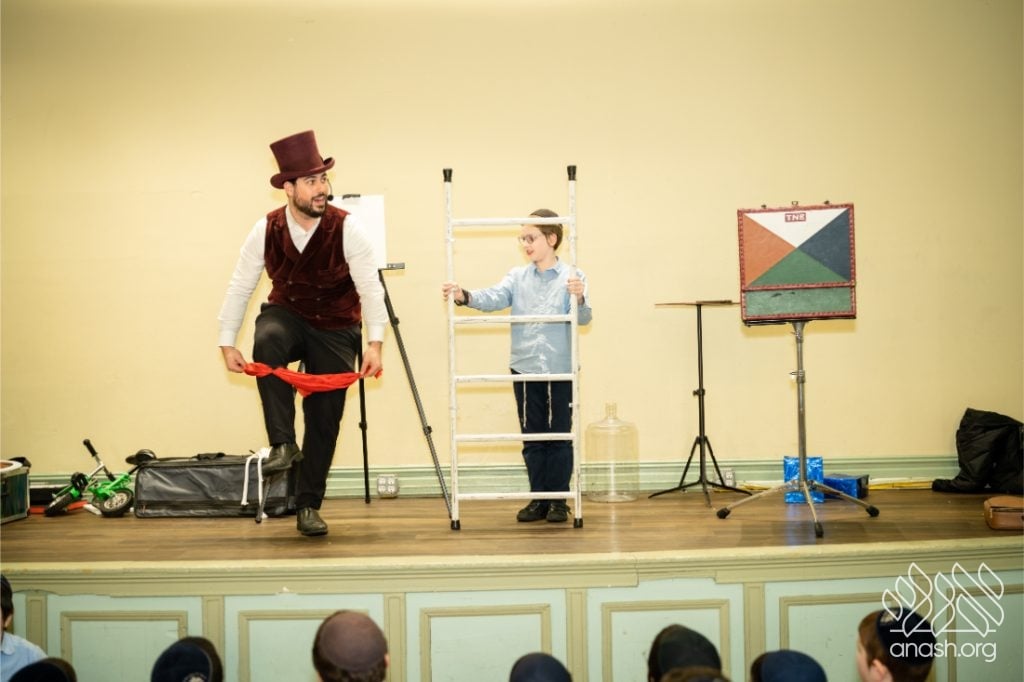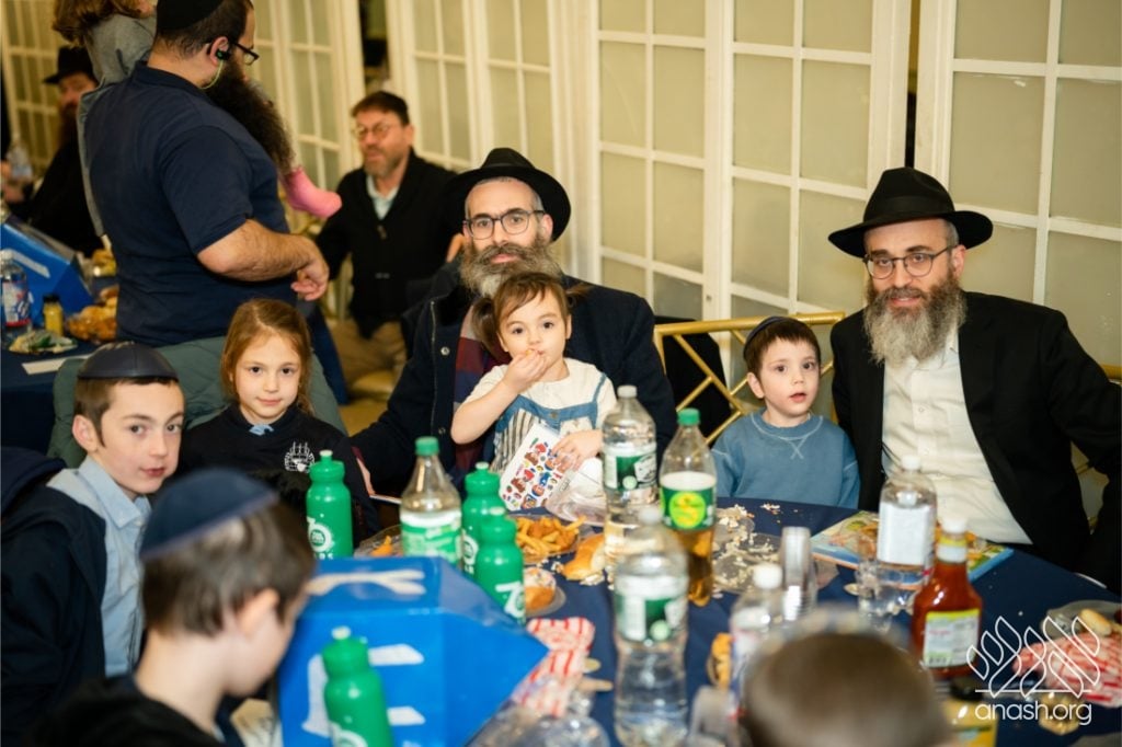 Families enjoyed a delicious fleishig dinner, followed by a lively and engaging performance by The Nussi Show, which brought smiles to children and adults alike and added to the festive atmosphere of the evening.