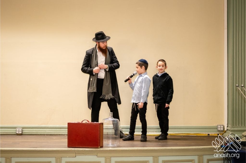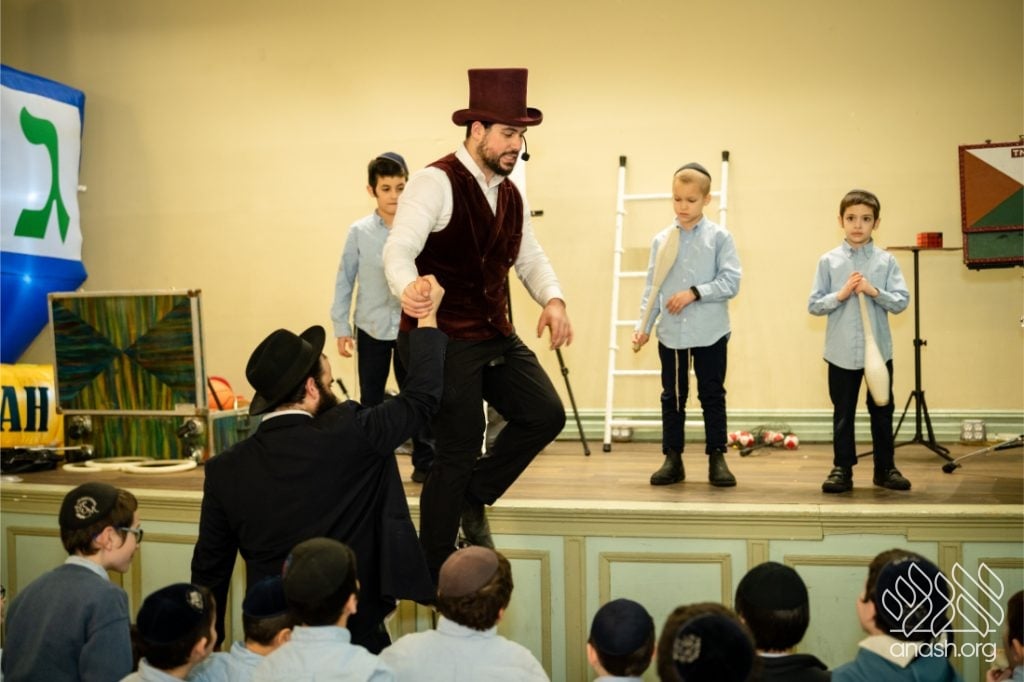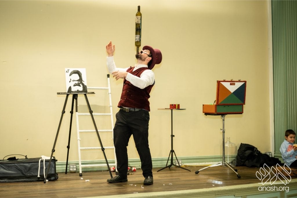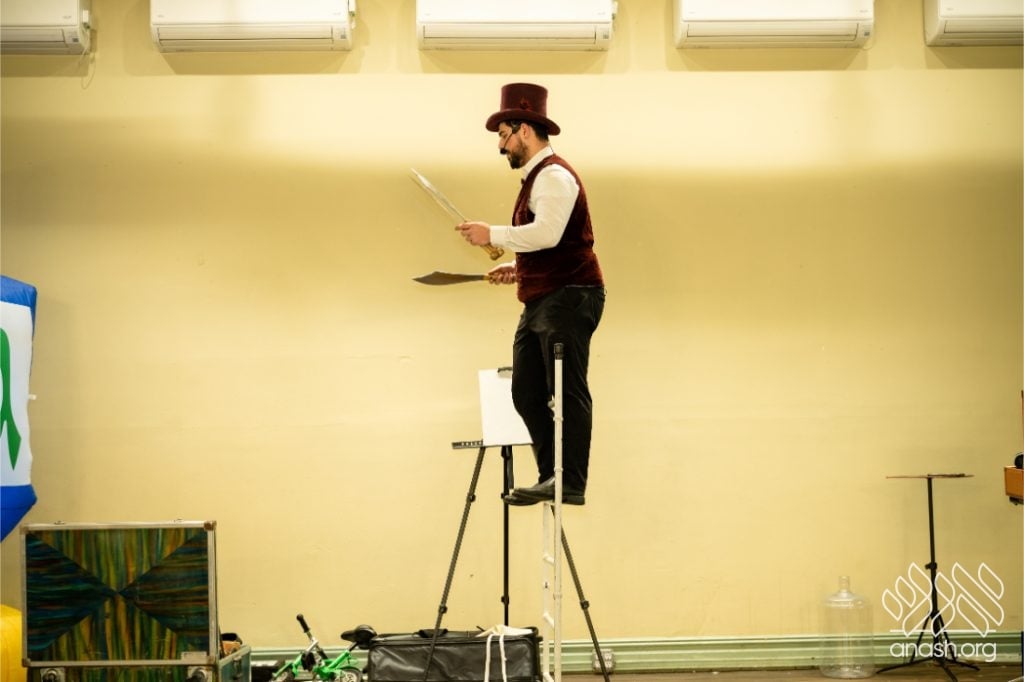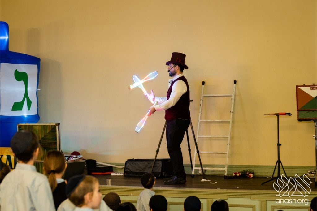 Families enjoyed a delicious fleishig dinner, followed by a lively and engaging performance by The Nussi Show, which brought smiles to children and adults alike and added to the festive atmosphere of the evening.