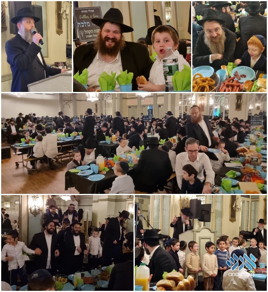Talmidim of Oholei Torah school in Crown Heights were joined by their fathers for a festive melave malka with a special program and raffles. It concluded with a joyous dance.